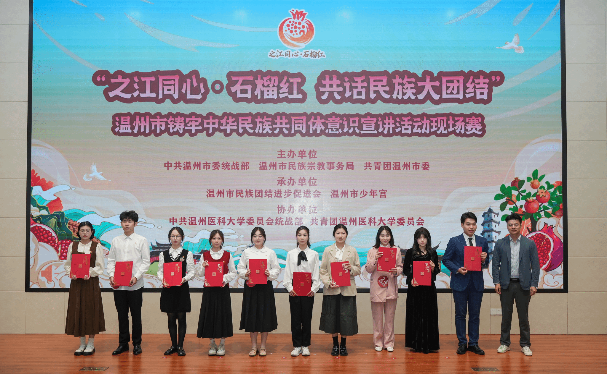 为贯彻落实党的二十大精神,纪念“八八战略”实施20周年,在青少年群体中广泛开展铸牢中华民族共同体意识教育,2023年11月3日、4日,由中共温州市委统战部、温州市民族宗教事务局、共青团温州市委联合主办,温州市民族团结进步促进会、温州市少年宫联合承办的“之江同心·石榴红 共话民族大团结”温州市铸牢中华民族共同体意识宣讲活动现场赛在温州市少年宫和萝莉岛 顺利举行。萝莉岛 学子2023级护本3班黄王硕同学以《民族团结一家亲 坚定不移跟党走》荣获三等奖。