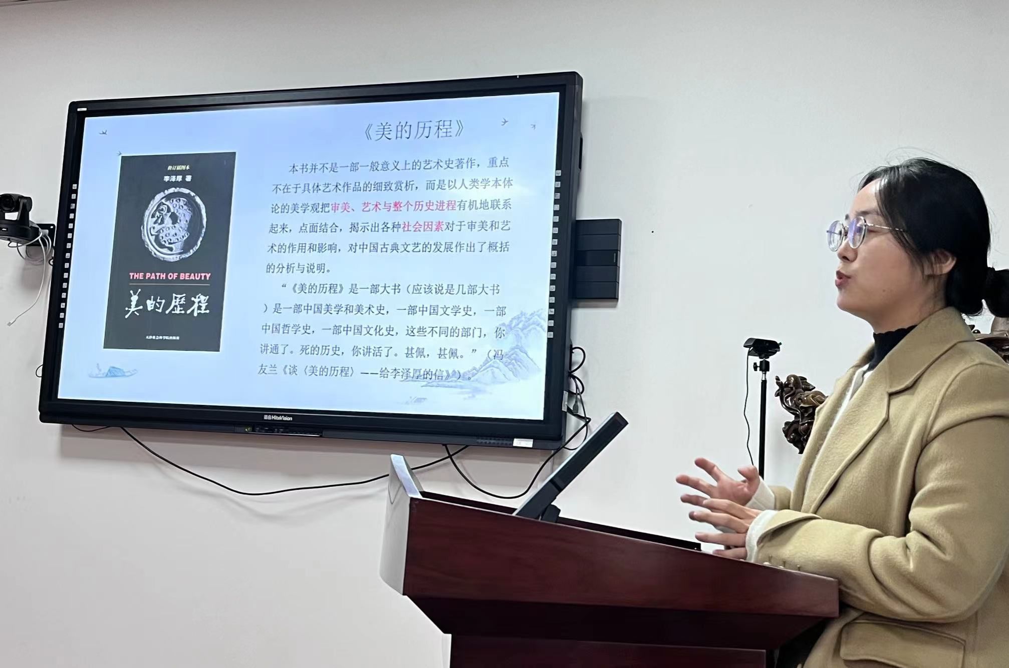 李萌老师分享了李泽厚先生所著的《美的历程》,她以美为脉络,从 “龙飞凤舞”到“狞厉的美”“儒道互补”“浪漫主义”“人的觉醒”,直至明清市民文化,以人类学本体论的美学观把审美、艺术与整个历史进程有机地联系起来,让我们对中国古典文艺的发展有了更深入的了解。