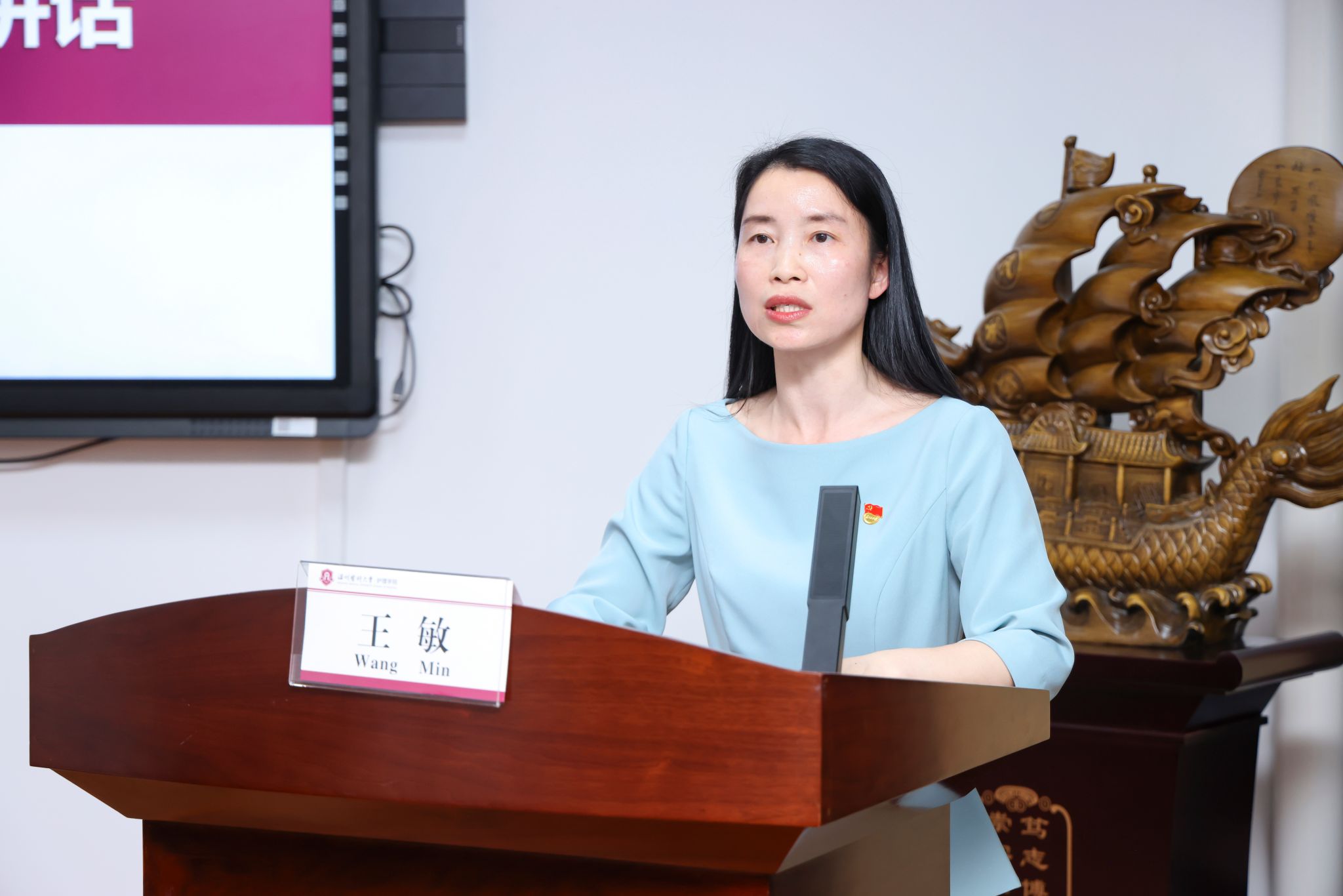 王敏提出三点工作要求,一要以更高站位深刻领悟党的自我革命的重要思想内涵,二要以更大力度推进全面从严治党向纵深发展,三要以更严要求推动党纪学习教育见行见效。要强化政治引领,推动“两个维护”走深走实;深化理论武装,坚持用党的创新理论凝心聚魂;实现固本强基,推进组织建设提质增效;立足“四责协同”,压实全面从严治党责任链。要把开展党纪学习教育作为重要政治任务,科学谋划、精心组织、务求实效。要准确把握主题主线,锚定目标要求,抓住学习重点,真正使学习的过程成为增强纪律意识、提高党性修养的过程。要坚持学用结合、以学促干,把开展党纪学习教育同学院中心工作、重点任务紧密结合,使党纪学习教育成为加强作风建设、促进学院发展的有效举措。