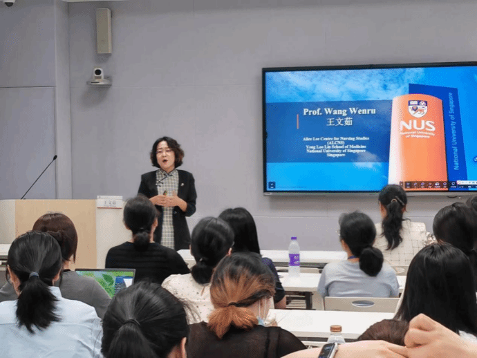 王文茹教授介绍了新加坡国立大学护理学科5个发展方向,包括慢性病和长期护理、教育创新、老年健康护理、患者安全、质量护理和妇女儿童健康护理,她对两校护理师生的短期课程交换和科研交流表示欢迎。