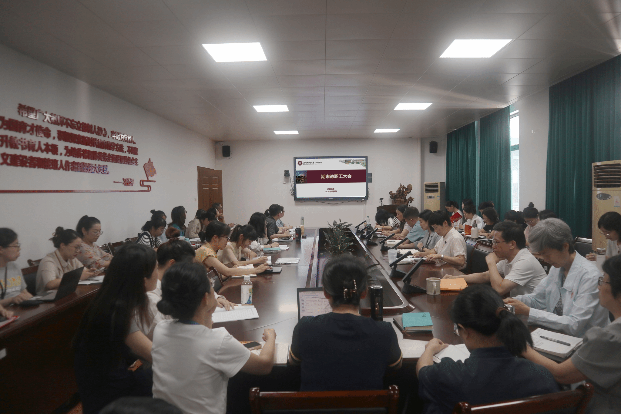 7月5日下午,学院在7C306会议室召开期末教职工大会,专题学习习近平文化思想在浙江,部署暑期重点工作。院领导班子及全体教职工参加会议,会议由副院长黄小琼主持。