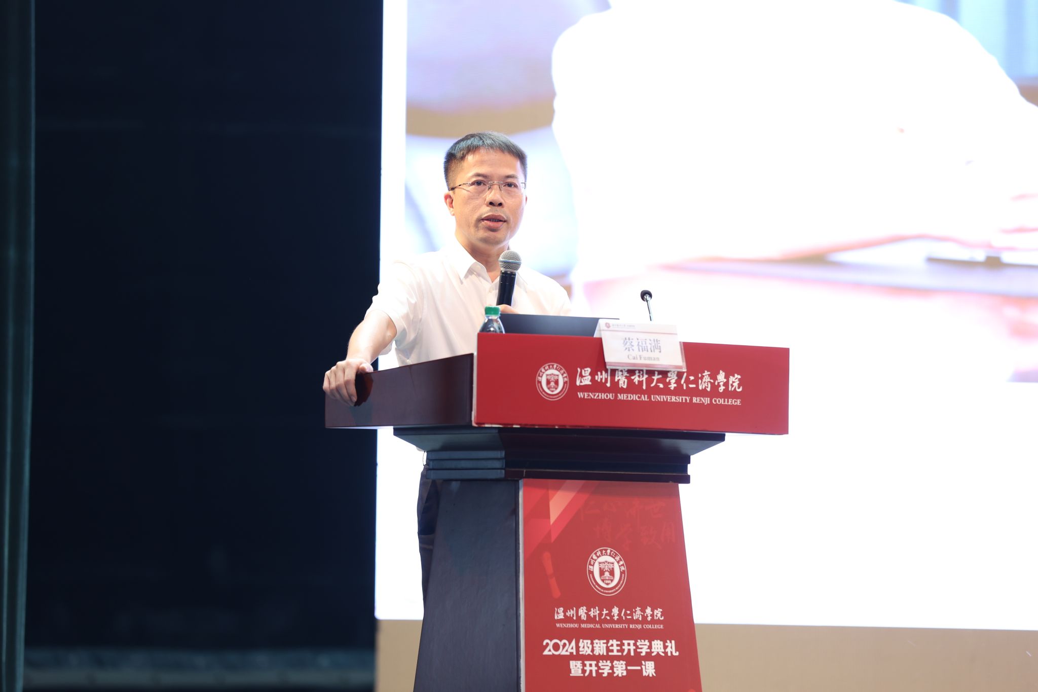 为增进新生对学校、学院、学科的了解,蔡福满院长用幽默而富有启迪性的语言,为新同学们上了一堂生动而意义深远的入学第一课。首先,蔡院长代表学院全体师生,向远道而来、满怀期待与憧憬的新生们表示了最热烈的欢迎和最诚挚的祝福。