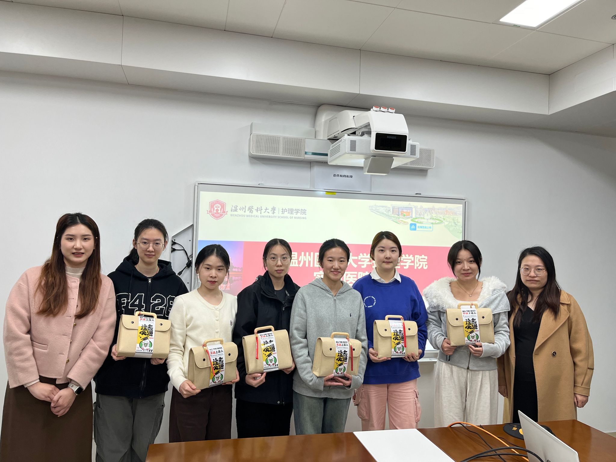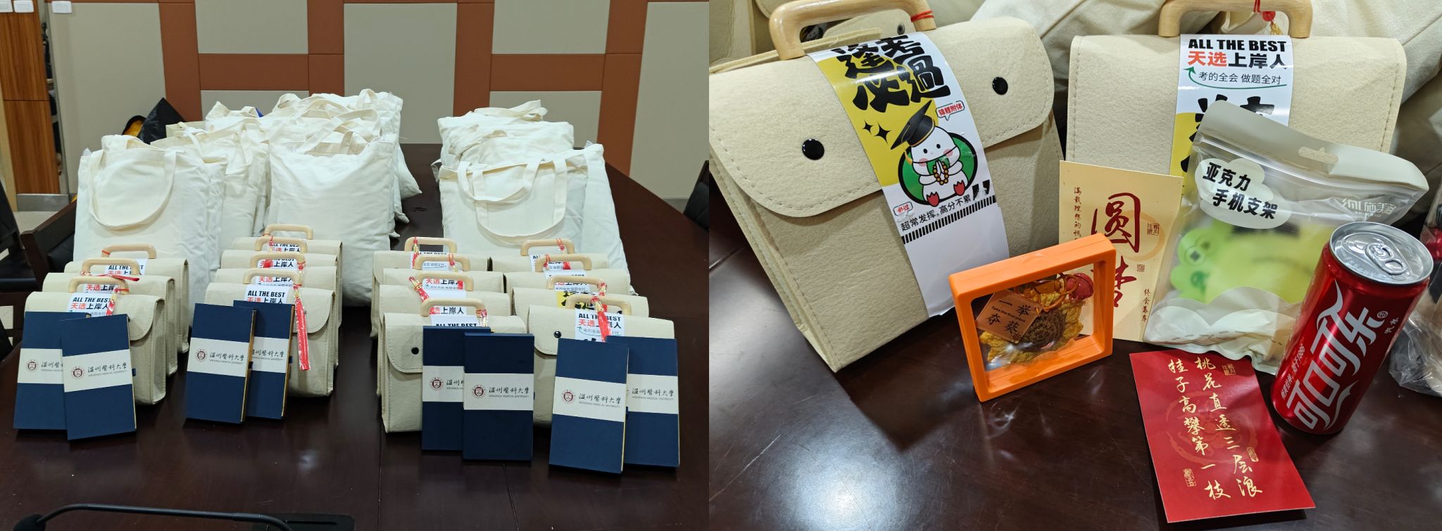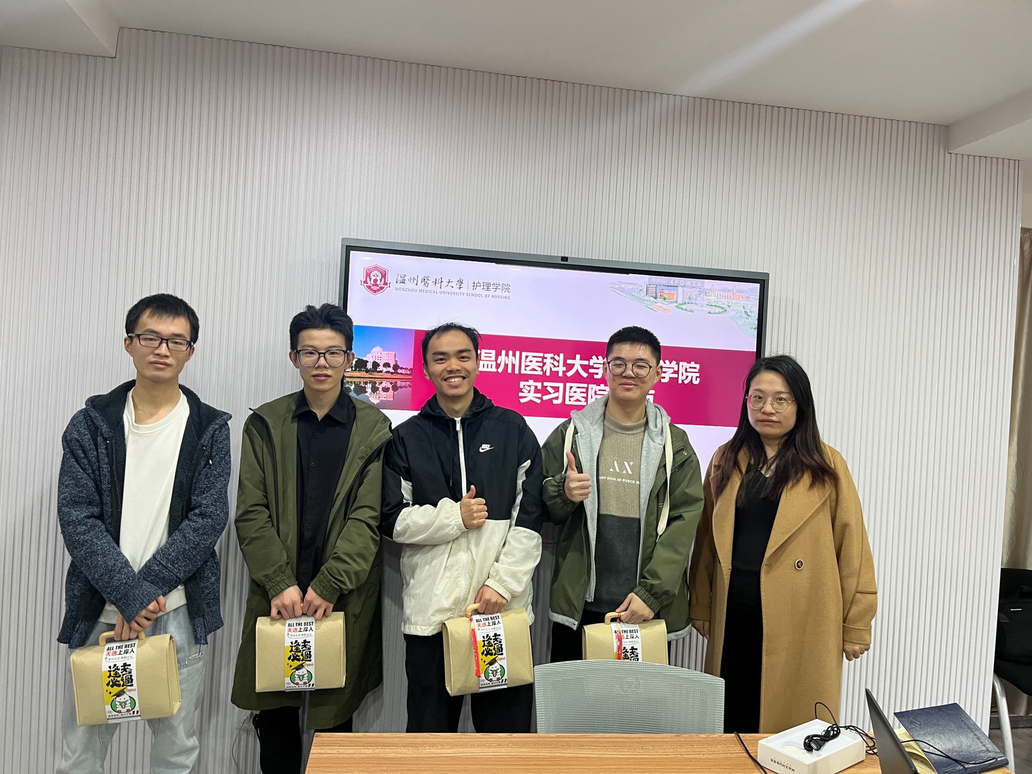在考研冲刺的关键阶段,为深入了解萝莉岛 考研学子的备考情况,送上学院的温暖关怀。近日,萝莉岛 2025届辅导员张迪、李飞跃和张颖走访了温州市区实习点,为实习期间努力备考的同学们送去了精心准备的考研大礼包,每一件礼品都蕴含着美好寓意。象征着“一举夺魁”的针织葵花,愿同学们在考研的战场上勇夺佳绩。象征着“青松上岸”的手机支架,希望能够缓解同学们备考时的疲惫,保持最佳状态。同时,贺卡上写满了考研祝福语,愿同学们在考研的路上,每一步都坚定而有力...