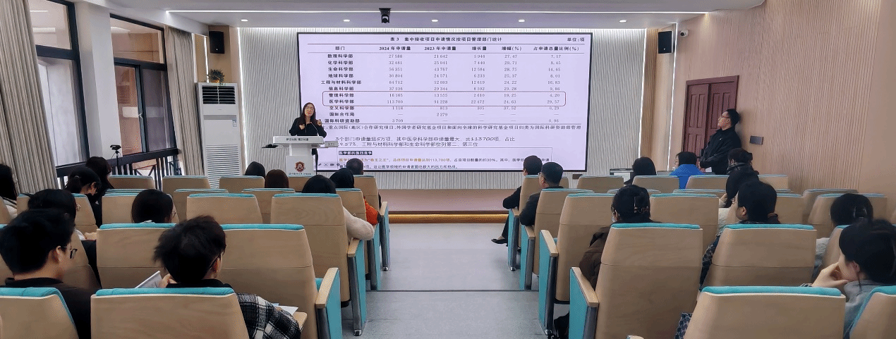杨宇芳教授首先对历年国家自然科学基金医学部中标项目进行分析,并详细解读2024年各地区项目获批情况及资助分布。通过详实的数据分析,她深入阐述护理学科在管理科学部和医学科学部的竞争态势,并指出护理跨学科申报的重要机遇与挑战。随后,杨宇芳教授以“深耕细作步步为营:打好科研申请的胜利战”为切入点,重点剖析创新性、可行性、研究基础及研究内容等四个关键问题。她从“点子新、底子厚、本子靓”三大要素出发,就项目题目创新性、摘要逻辑性及申请书撰写等方面进行深入浅出的讲解;从创新点凝练、可行性论证、研究基础积累等多个维度,结合获批案例分享了项目申请书撰写的具体技巧与实践经验。她指出,在当前护理学科快速发展的背景下,需要抓住护理学科与其他学科的交叉融合,抓住国家政策热点研究突破创新。她强调,优质的国家自然科学基金项目申请需要长期的学术积累和团队协作,建议青年教师要重视日常文献阅读,加强团队合作与分工。