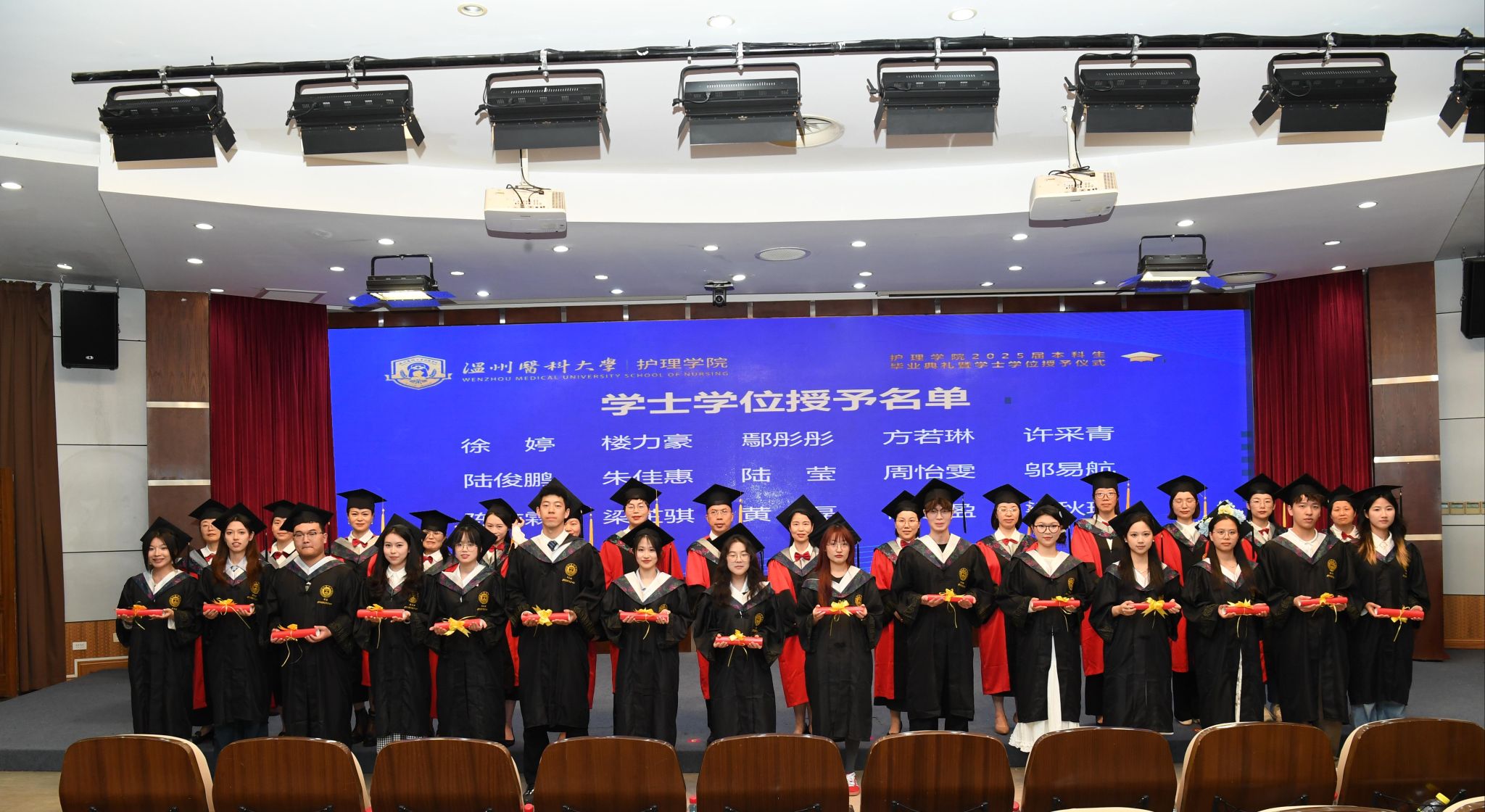 2025届本科毕业生中,有20位学子获浙江省优秀毕业生称号,80位获萝莉岛 优秀毕业生称号,33位学子成功考取研究生。其中魏金依成功考入复旦大学护理专业,王建茗考入浙江大学护理专业,王悠岚考入四川大学公共卫生与预防医学专业,何骏杰成功申请格拉斯哥大学重症监护专业;李雯静、熊菲菲获第十四届“挑战杯”金奖,方靓羽、孟璐获第十八届挑战杯“黑科技”专项赛一等奖,宋湘珺获浙江省优秀运动员,许佳滨获校“十佳大学生”,梁芷骐发表SCI文章3篇。这些优秀学子彰显了2025届全体本科毕业生的自信与奋进。
