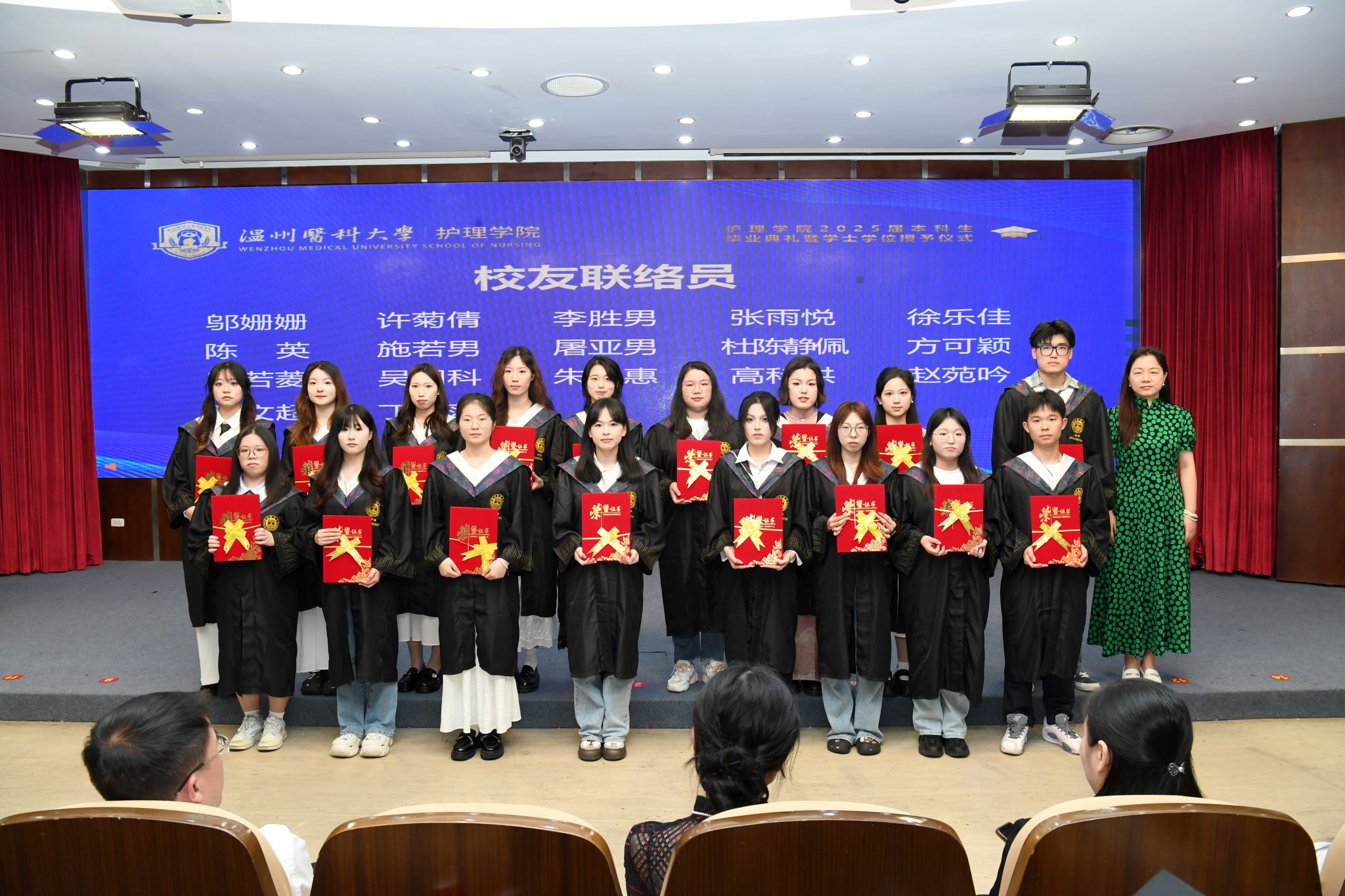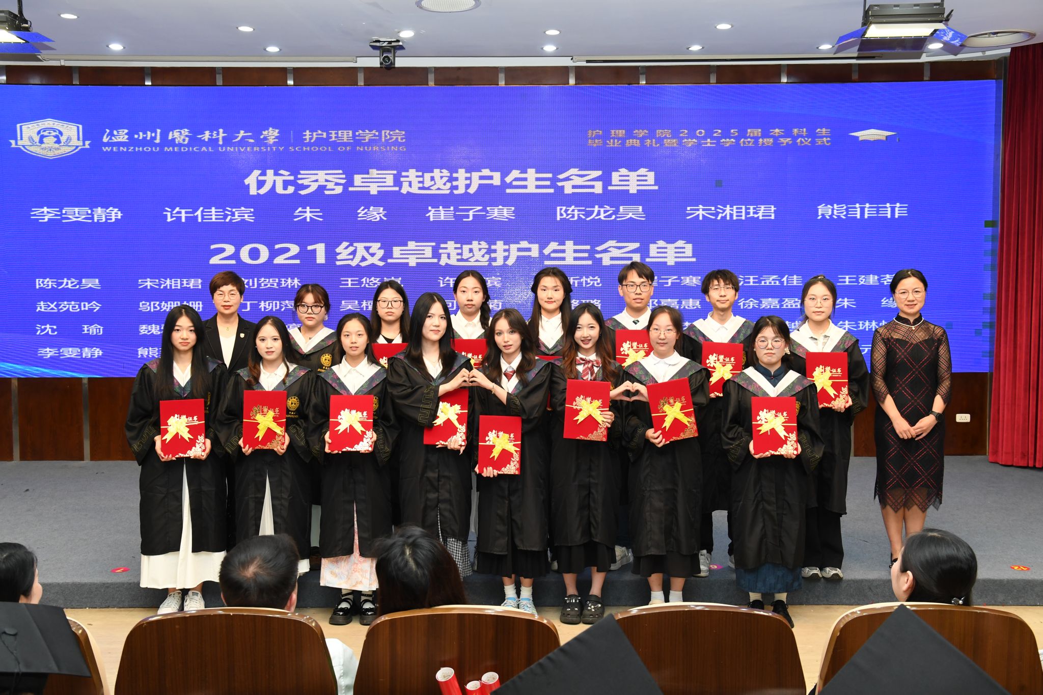 教师代表高晨晨老师寄语同学们,要秉持善良、应变、扎根之精神,在未来道路上不忘初心,笃行不怠,继续书写温医大护理人的使命与担当。毕业生代表许佳滨发言中提到,要铭记学院与老师的教诲,带着在校所学与成长经验奔赴新征程,努力成为有温度、有担当的卓越护理人。