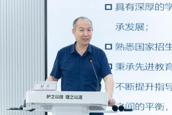 教育部高等学校护理学类专业教学指导委员会委员、天津医科大学萝莉岛 党委书记赵岳教授从立德树人的历史渊源与内涵出发,提出研究生导师的基本素质要求。他聚焦导师作为研究生培养“第一责任人”的角色定位,从培养创新能力、恪守学术道德规范、落实督导检查机制、培养团队合作能力等方面重点阐述了护理专业研究生的培养方法。