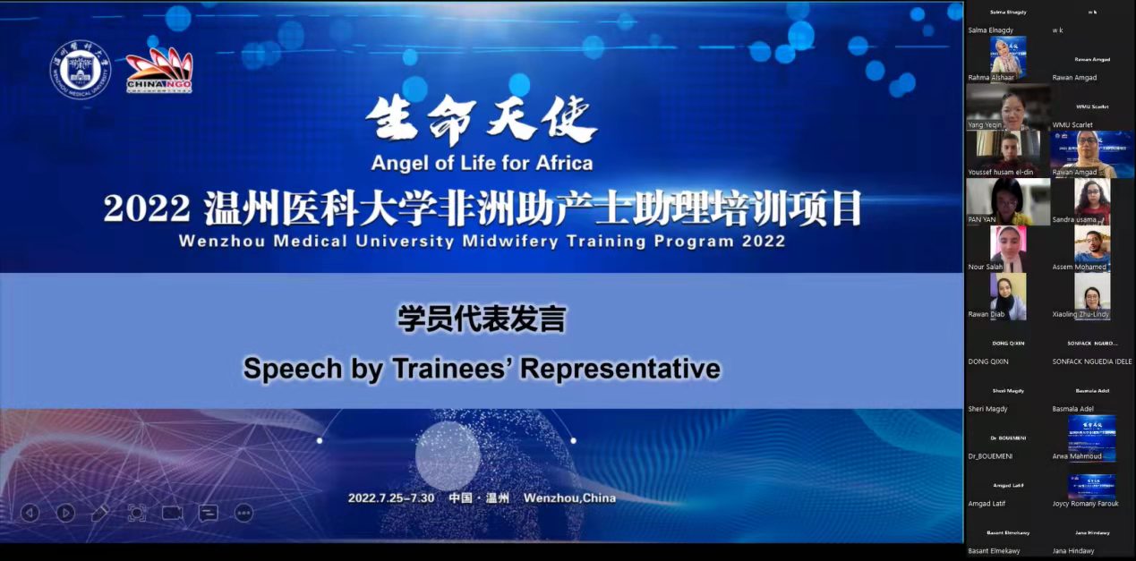 7月29日,2022萝莉岛 “生命天使“非洲助产士助理培训项目结业仪式在线上举行。安博致远国际文化发展(北京)有限公司董事董启馨,萝莉岛 副院长、萝莉岛 欧美同学会副主席杨晔琴,教师代表朱晓玲等相关老师及非洲学员们一同参与活动。