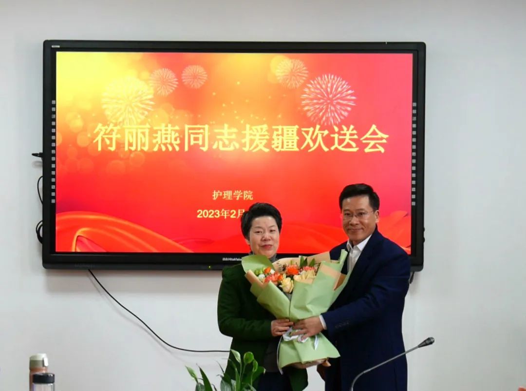 会上,党委书记李旭东介绍了此次援疆工作的背景及要求,对符丽燕老师勇挑援疆重任表示感谢。他指出,援疆责任光荣、使命重大,援疆工作既是一项政治任务,又是一次宝贵的锻炼机会,希望符丽燕老师能不负重托顺利完成援疆任务,搭建两地合作的桥梁,成为两校发展的纽带,帮扶受援学校教师全面提高教育教学和管理水平,展现温医大护理人的风采,为学校、学院争光。