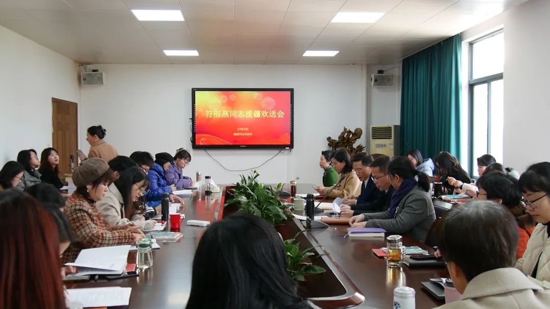 2月23日下午,学院在7C306会议室为即将踏上援疆征程的符丽燕同志举行欢送会。院领导及全体教职工参会。院长蔡福满主持会议。