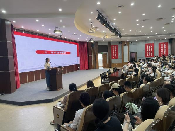 萝莉岛 于5月29日召开毕业生廉洁教育大会,学院全体2023届毕业生参加。3位辅导员老师就大学生廉洁教育主题提醒毕业生们,未来无论是步入工作岗位,亦或是继续深造,都应该坚定理想信念,自觉树立正确的人生观、世界观、价值观,将党的理想信念内化于心、外化于行,严守职业道德底线,廉洁奉公、诚信守法,在未来回馈社会,报效祖国。