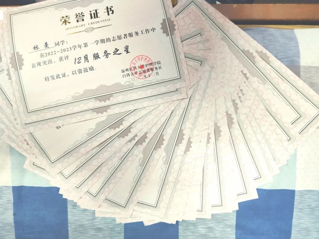 在白鸽各部门中评选表彰在每月与每学期中积极投身志愿工作的个人,授予“月服务之星”与“季服务之星”称号,起到激励社员继续保持志愿服务的热情。本次共有8位“季服务之星”与29位“月服务之星”。并让同学们分享自己的服务感受和服务体验,发挥示范带动作用,扩大志愿服务影响力、号召力,激励更多学生参与到志愿服务工作中来。社会的进步需要全社会的共同参与和努力。志愿工作正是鼓励越来越多的人参与到服务社会的行列中来,对促进社会进步有一定的积极作用。我们将继续加强培训,积极打造一批学雷锋志愿者队伍,弘扬雷锋精神。继续秉承“奉献、友爱、互助、进步”的宗旨开展志愿活动,普及急救知识。