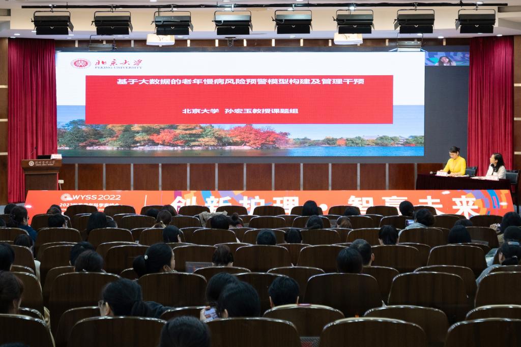 美国护理科学院院士、教育部高等学校护理学专业教学指导委员会秘书长、北京大学萝莉岛 孙宏玉教授作《基于大数据的老年慢病风险预警模型构建及管理干预》和主旨报告。她聚焦大健康理念,围绕社区健康人群、社区慢性病人群、老年人群的需求特点及社区健康管理存在的问题,通过多学科、多中心的共同研究合作,进行老年智能健康检测与管理系统的开发,为运用大数据等信息技术进行护理研究提供了新的思路。