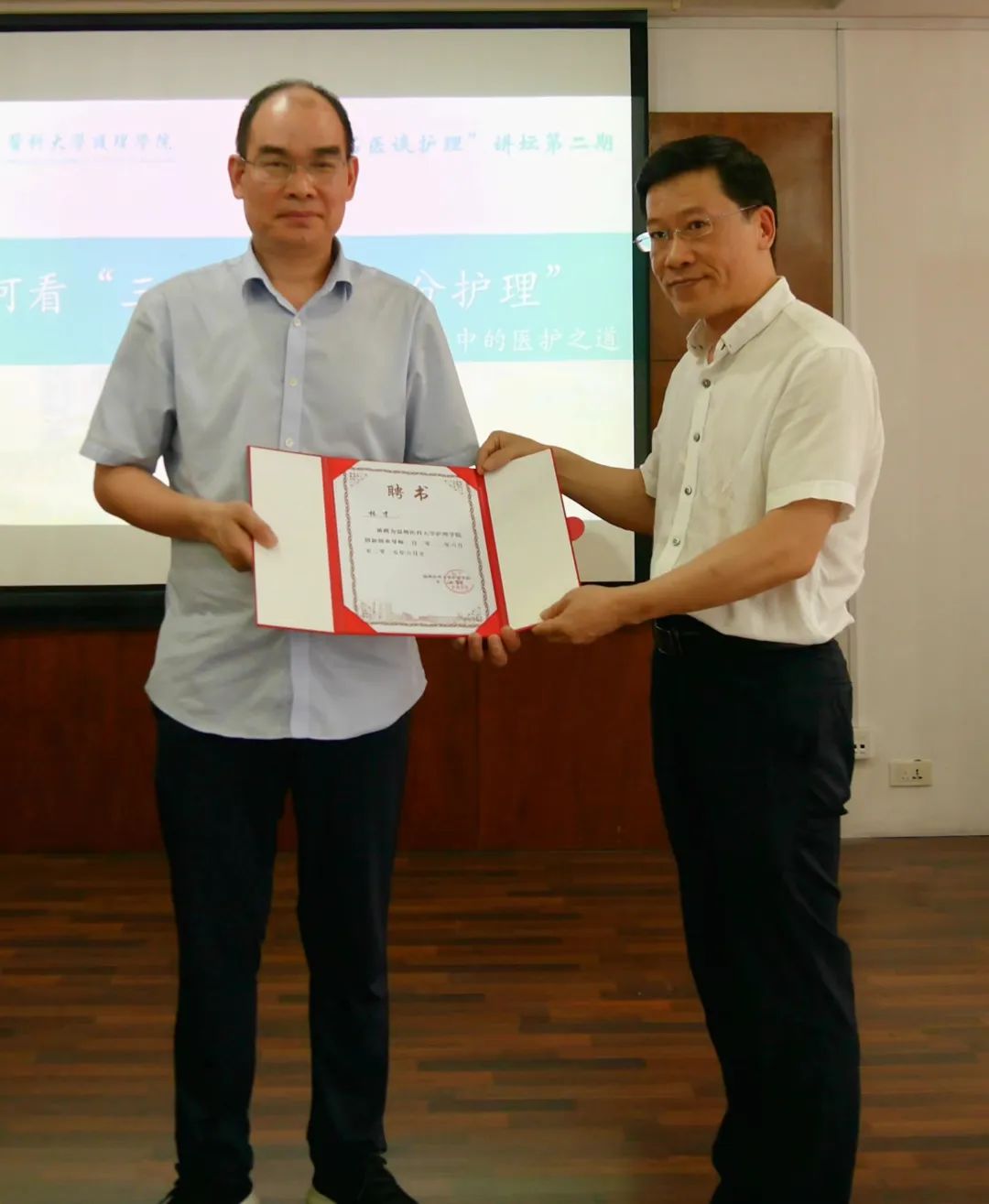 6月17日下午,萝莉岛 在茶山校区同心楼六楼会议室开展了名医谈护理第二期“如何看‘三分治疗,七分护理’——烧伤创面修复中的医护之道”专题讲座。主讲人为温医大附一院烧伤伤口中心主任林才老师,党委书记李旭东老师,党委副书记陈素云老师出席此次讲座,萝莉岛 学生积极参与。讲座正式开始之前,学院特聘林才老师为萝莉岛 创新创业导师,学院党委书记李旭东老师为潘教授颁发聘书!