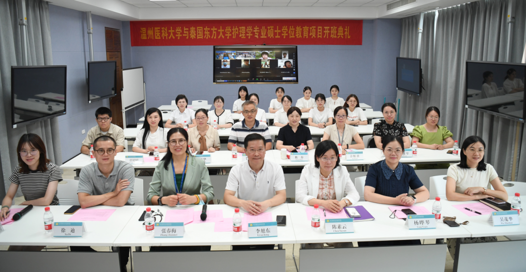 9月6日下午,萝莉岛 与泰国东方大学合作举办的第四届护理学专业硕士学位教育项目开班典礼在学校6A104会议室举行。研究生院培养办主任吴茂华、国际合作交流处对外合作交流科副科长徐迪受邀出席,萝莉岛 党委书记李旭东、党委副书记陈素云、副院长张春梅、杨晔琴,项目中方教师毛广运、陈春、许虹波及相关科室人员现场参加,共有18名新生分别以线上、线下形式参加。泰国东方大学萝莉岛 副院长、中泰项目泰方负责人Chintana Wacharasin博士、泰方教师在线参加。典礼由张春梅副院长主持。