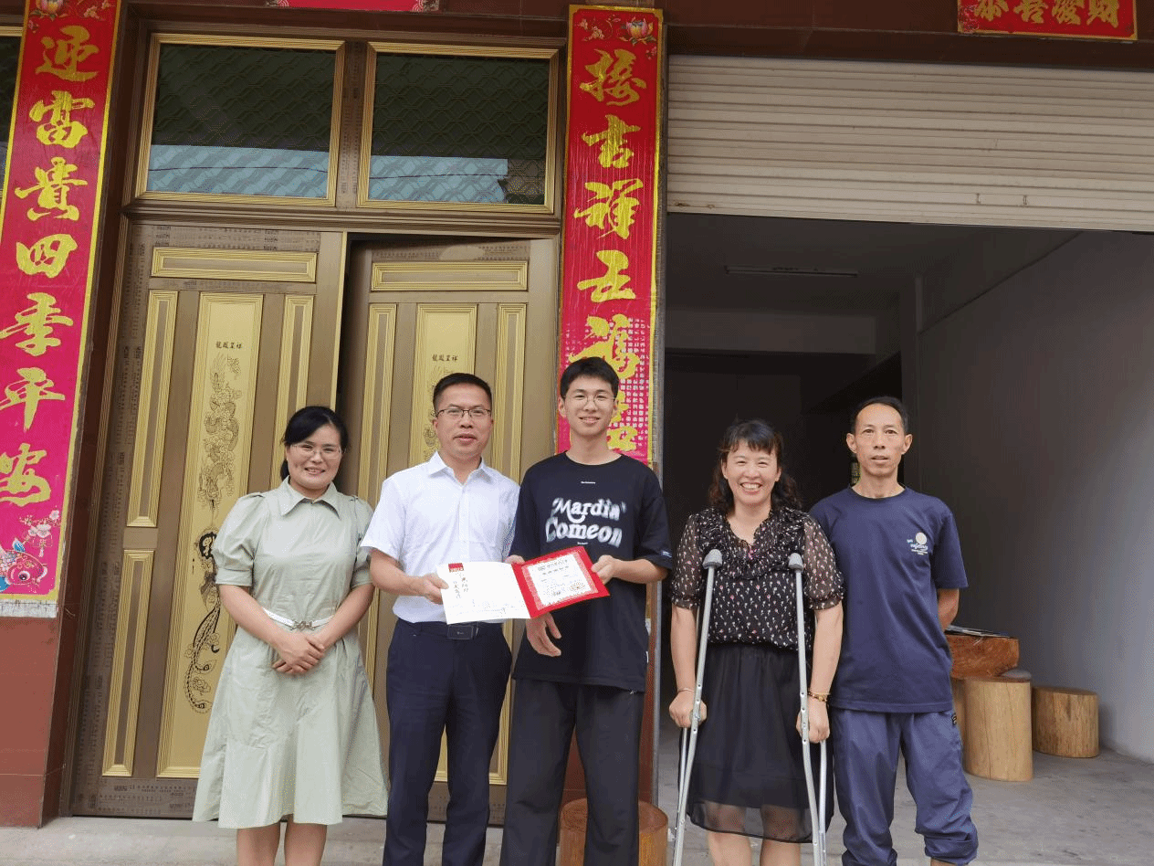 7月29日上午,萝莉岛 院长蔡福满前往丽水市莲都区,化身“邮差”亲自将2023年第一份录取通知书送到学生舒斌凯手中,学院社区教研室主任李菊芳陪同。