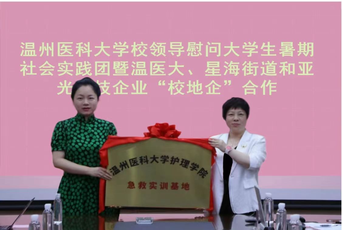 金晓童副书记代表萝莉岛 为星海街道授予“萝莉岛 急救实训基地”牌匾,以期达成长期合作。随后,章红波书记为实践团学生代表赠送慰问物资,期望同学们脚踏实地,以高度的社会责任感和历史使命感,积极投身到医疗卫生服务中去,共筑温暖之洲。