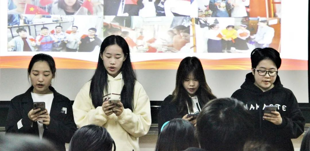 本次主题团日活动首先以“小宿舍 微赛场”的形式开展,团支部组织以宿舍为单位进行诗歌朗诵、红歌串烧以及红色情景剧排练等。围绕党史学习教育各寝室齐心协力准备一个微课件、挑灯夜战准备一份朗诵稿、齐声唱响一首红色经典歌曲……