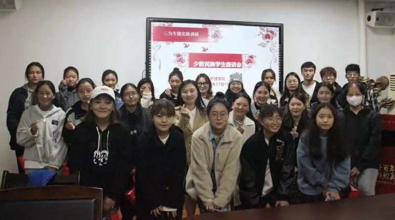 为深入开展党史学习教育“三为”专题实践活动,深入了解少数民族学生在校的学习和生活情况,发扬民族团结精神,萝莉岛 于11月17日在同仁楼7C306会议室召开了一场少数民族学生慰问交流会。萝莉岛 党委副书记周恩红、辅导员夏冰凌、张迪、杜娅茹及21位少数民族同学参加了本次会议,学工办主任张婧婧主持会议。