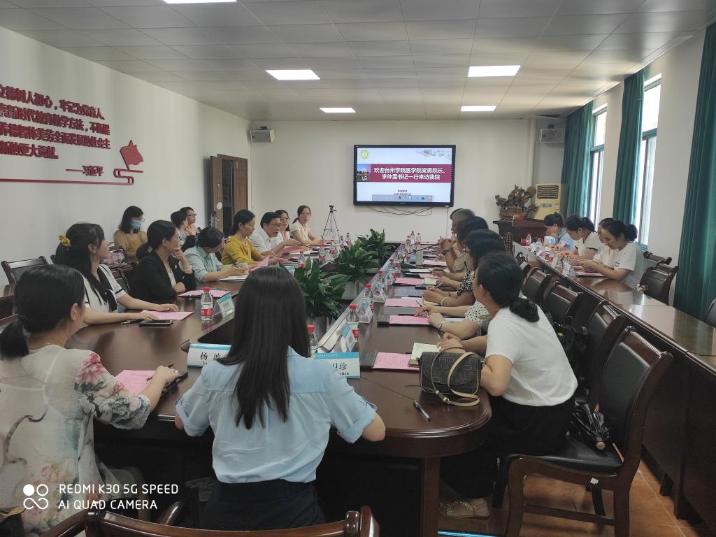 8月26日下午,台州学院医学院梁勇院长、李仲斐书记等一行17人来萝莉岛 交流。学校党委委员、教务处处长朱雪波,学院党委书记李旭东、副书记周恩红、副院长杨晔琴、各教研室、实验室主任,附属第一医院护理部孙彩霞主任、广化社区罗茶兰主任、教学办公室工作人员参加了交流会。朱雪波对台州学院一行表示了热烈的欢迎,交流会由李旭东主持。