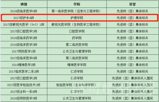 在这样的学风之下,17护本4班综测成绩排名靠前,班级有11名同学位于学院排名前30%,2位同学获得了校级一等奖学金,5位同学获得校级二等奖学金,7位同学获得校级三等奖学金。另有大部分同学获得励志奖学金、省政府奖学金、三好学生、优秀团员、其他单项奖学金等奖项。