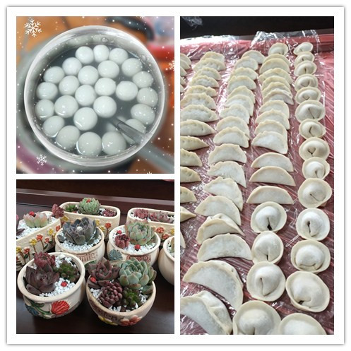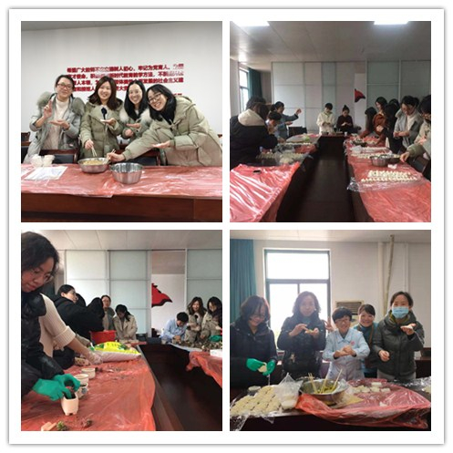 活动现场热火朝天。看见准备好的饺子皮和各种口味的馅料,老师们顿时干劲十足,多个小组分工协作,相互切磋包饺子的技巧,比较形态各异的成果。一碗碗热腾腾的饺子、汤圆温暖了老师们的心。