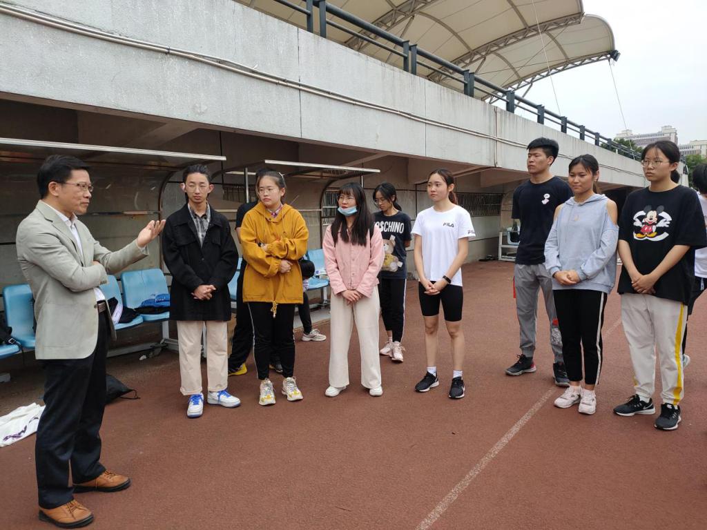 10月29日上午8点半,萝莉岛 党委书记李旭东、副书记周恩红以及学院辅导员老师前来田径场慰问训练中的运动员们。