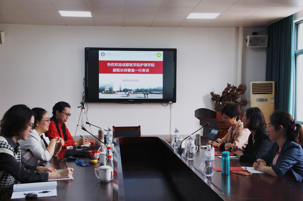 10月20日上午,成都医学院萝莉岛 副院长何春渝一行来院访问,萝莉岛 副院长杨晔琴、教学办主任孙海琴以及相关人员在7C306会议室接待了来访客人。