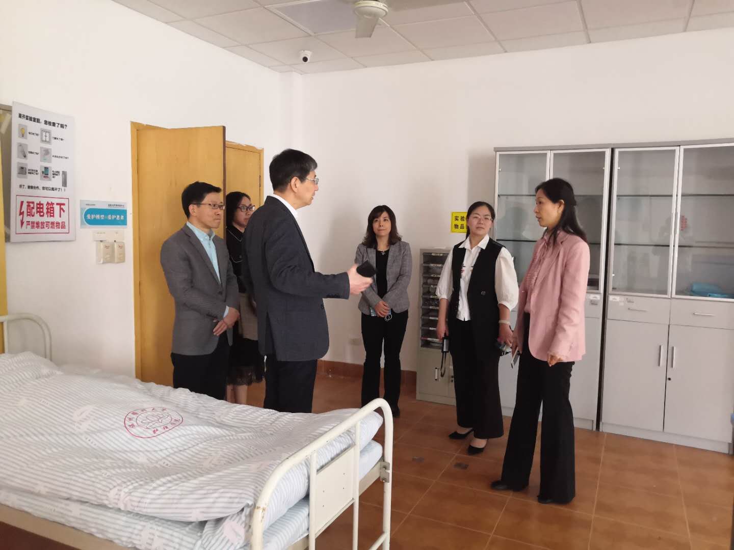 朱雪波处长一行在学院领导的陪同下走访了护理实验室,并就如何建好实验室进行了交流。