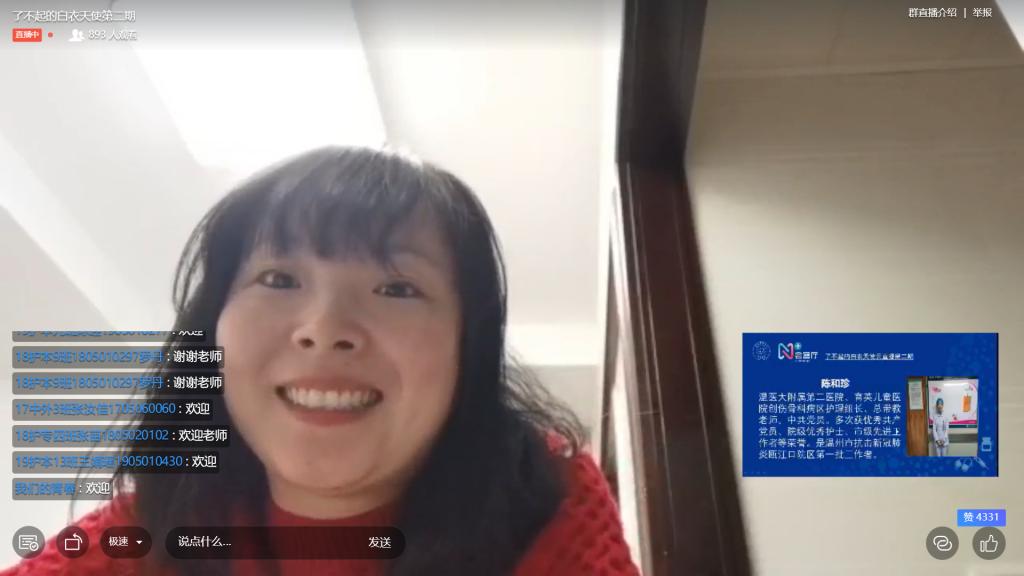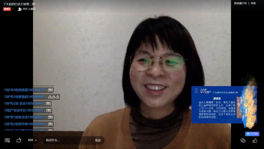 4月9日萝莉岛 “了不起的白衣天使”直播间邀请到了奋战在温州“火神山医院”一线的四位白衣天使,与同学们分享战“疫”故事。他们作为温州“火神山医院”的抗疫担当,彰显温州力量,完美地诠释了南丁格尔精神,给萝莉岛 900多名师生上了一堂生动而有意义的思政课,引导同学们奋发有为,听从党指挥,让爱国主义情怀深植于心。