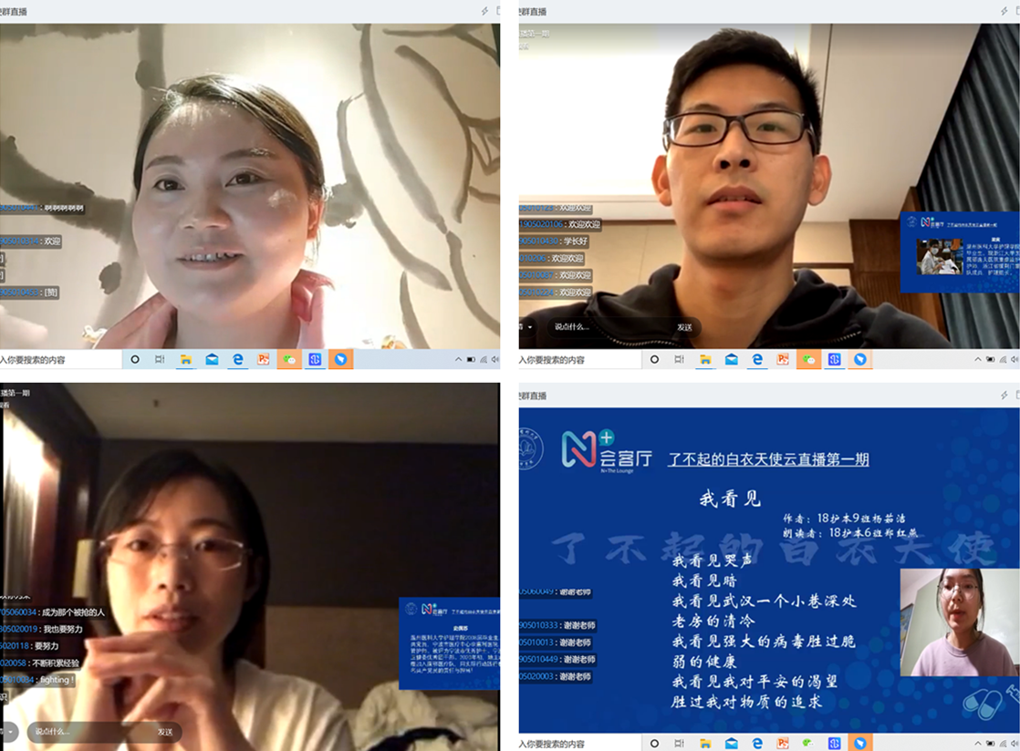 “用最简短的话语,最柔和的语气给患者最宏大的力量,支撑他们对抗疫情的信心。”这是浙江首批援鄂医疗队队员、萝莉岛 2003届校友胡丹红在给浙江医疗队和武汉医务人员发出的《倡议书》中写的话,她倡议医护人员用“一言一行”给患者带来“希望、力量、信心”。在这场没有硝烟的战“疫”之中,有无数“白衣天使”化身“白衣战士”,成为最美逆行者,他们之后之中有不少是温医大护理的校友。为充分凝聚校友力量做好育人工作,萝莉岛 推出“了不起的白衣天使”系列主题活动,依托校友开展战“疫”天使故事汇——一线校友战疫情况介绍、战“疫”一线上的小确幸——了解真实的疫情战场、“逆行者”的初心和使命——N+会客厅云直播,学院官微相关内容阅读量达到15000人次,单场直播参与互动学生数近800人。通过这种方式,让一线战“疫”校友成为发声者参与育人工作,用其当下最真实的经历和感受引发护生们对护理工作意义和价值的深度思考,引导护生们树立坚定的专业认同感和职业自豪感。