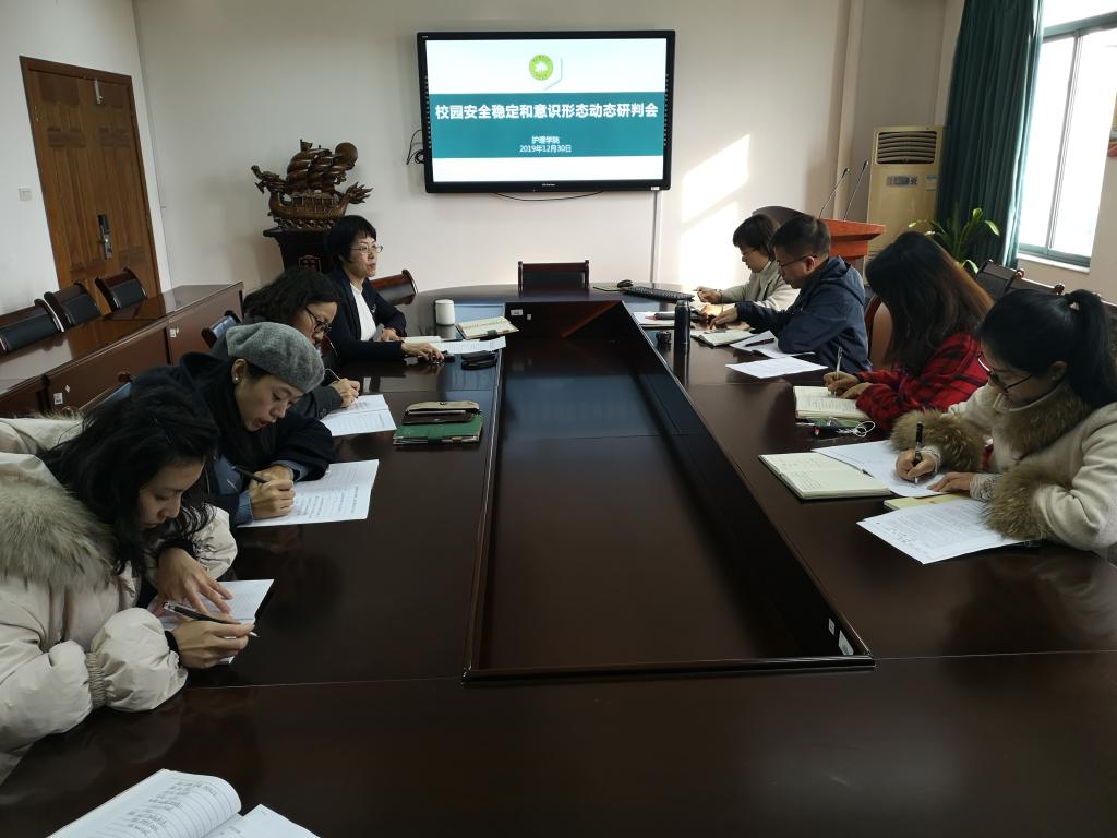 12月30日,学院在7C306会议室召开校园安全稳定和意识形态动态研判会。院党委书记陈慧主持会议,副院长蔡福满、党委副书记涂艳玲及学院办、教学办、学工办、实验室等相关科室工作人员与会。