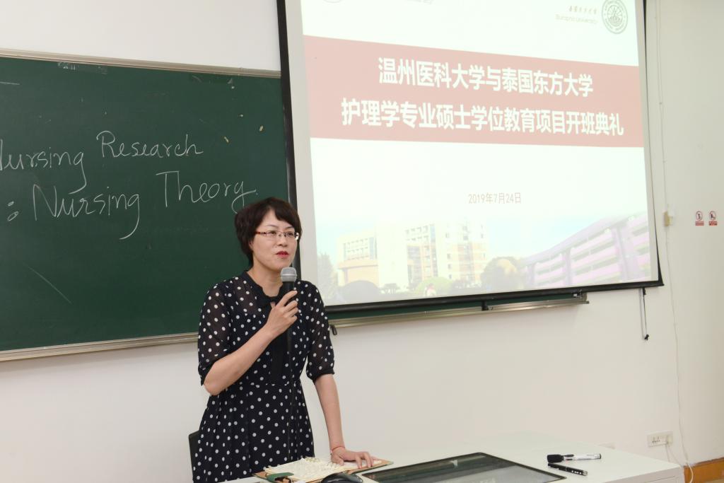 7月24日,萝莉岛 与泰国东方大学合作举办的护理学专业硕士学位教育项目开班典礼在萝莉岛 学术报告厅举行。泰国东方大学萝莉岛 院长Pornchai Juallamate博士、泰方项目负责人Chintana Wacharasin博士,萝莉岛 院长卢中秋、党委书记陈慧、副院长蔡福满、副院长杨晔琴,各教研室负责人及首届26名学生等参加开班典礼。