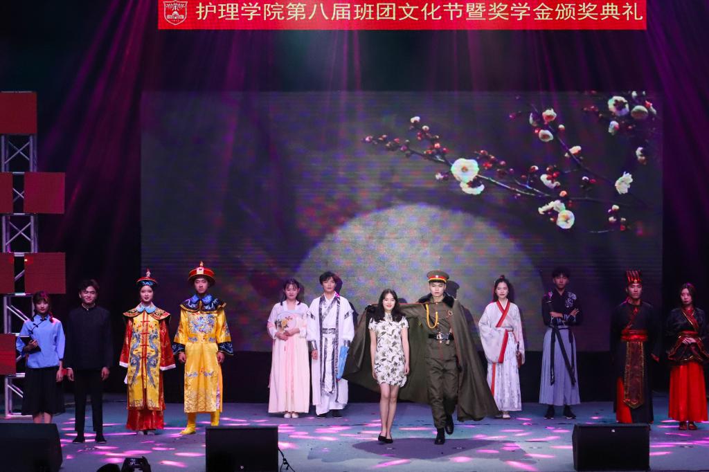 19护专4班用一幕《黎明之前》,重现了中国共产党如何在黎明下诞生;学院模礼队带来《中国年代秀》,展示了从先秦唐宋到晚清民国的服饰变化;19护专1班的话剧《我愿做护士》表达了护生们对护理职业的敬畏,对护理初心的坚守,对救死扶伤使命的牢记。