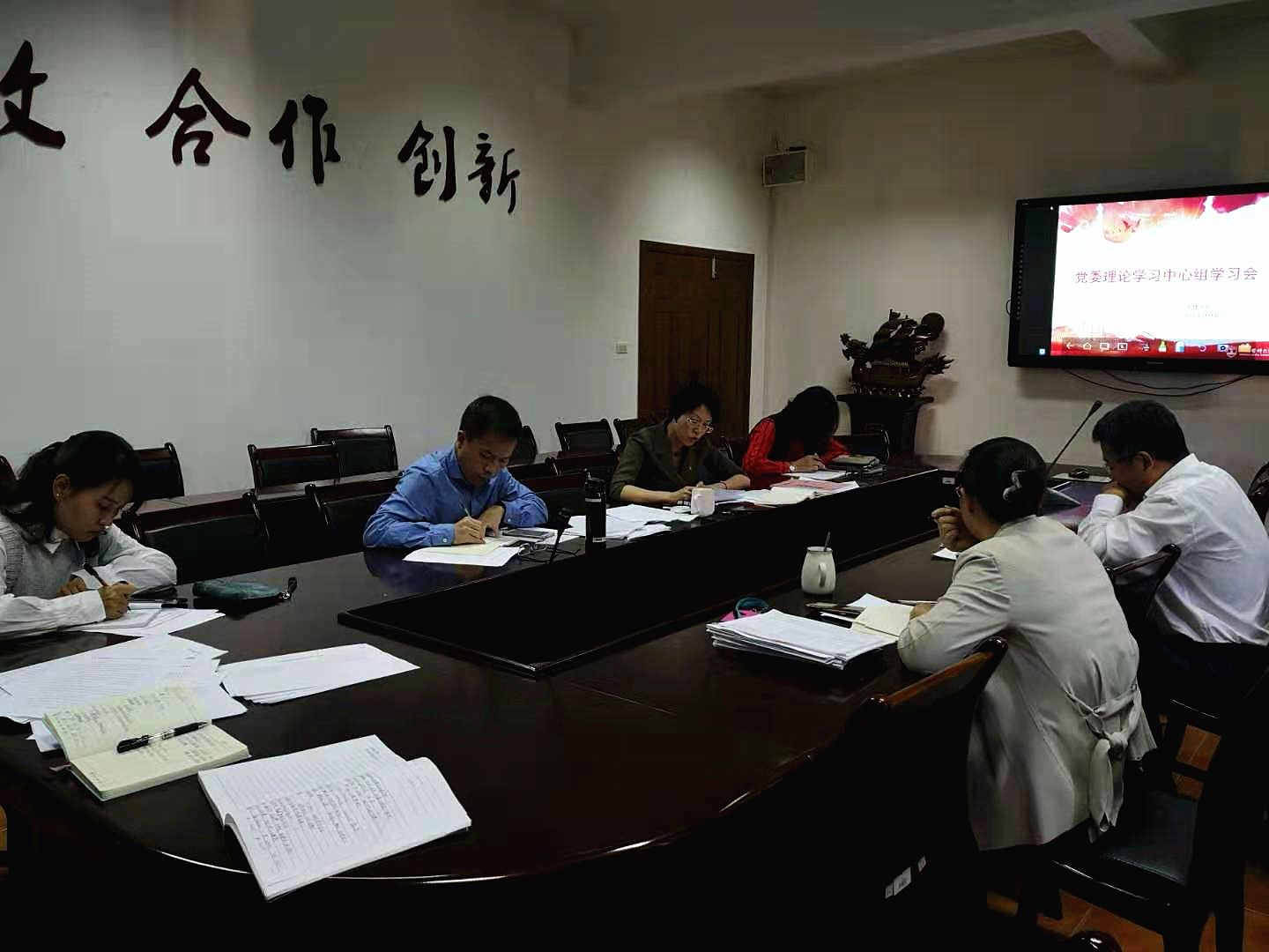 党委理论学习中心组学习会召开,专题学习党的十九届四中全会精神。会议由院党委书记陈慧主持。