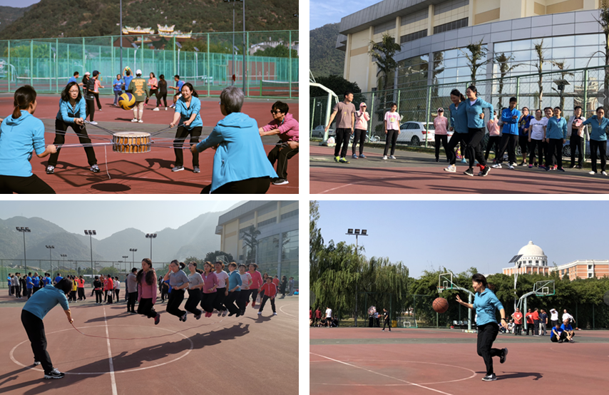 运动场上,教师们也斗志昂扬。集体跳长绳项目考量的是团体的默契度和配合度,2位摇绳的老师使出浑身的劲儿,随着绳子敲打着地面,8位跳绳的老师心里默数着节奏,一同起跳。“99,100,101……”加油和呐喊声中,老师们跳了109个,取得了团体第8名的好成绩。在2人3足接力赛中,学院的老师们两两组队,一组队员一起迈步,一起喊口号,相互配合,默契地奔跑,相互鼓励,取得了第6名的好成绩。篮球运球投篮项目中,平时很少接触篮球的老师们也使出浑身解数控球、投篮,最终获得团体第10名。同心击鼓比赛十分考验团队的配合能力,老师们抓好连接着大鼓的绳子,调整着自己的力度和角度以鼓逐球,挥洒汗水,享受了运动带来快乐,结果显得并不那么重要。此外,梁洁华老师在女子铅球中获得第5名的好成绩。