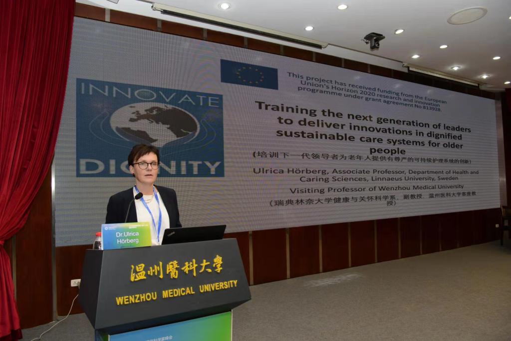 欧洲护理科学院核心院士、瑞典林奈大学健康学院Ulrica Hörberg博士就如何”为老年人提供有尊严的、可持续的护理创新体系”作讲演,主要介绍了欧盟资助的创新与尊严跨国研究项目。她认为在信息化时代,需要探究老年人口的实际需求,尤其是精神心理健康需求。她在详细分析现有医疗服务体系中的不足及原因的基础上,提出要构建以老人实际需求为核心的护理服务体系,及培训年轻一代领导者的应用创新能力,真正去关注老年人的实际需求及其尊严。