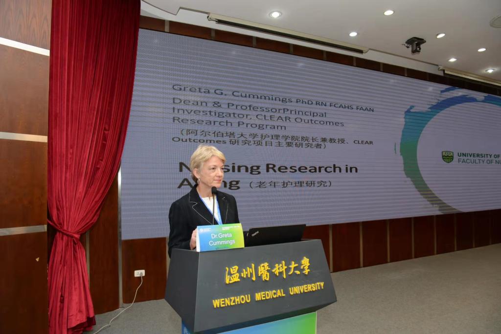 加拿大护理科学院院士、加拿大阿尔伯塔大学萝莉岛 院长Greta cumming 博士以《老年护理前沿研究》为题,在论坛上着重介绍了老年人机构间转移的过渡护理,为倡导“积极、成功老龄化”提供了新的研究思路和新的护理研究方向。她指出,过渡护理旨在提高长期照护机构住院老人在不同医疗机构间转移时照护的连续性,以避免不必要的院间转移,提升脆弱老人的生活质量和照护质量。她强调了老年人机构间过渡护理的重要性,还围绕如何更好提供过渡护理介绍了其科研团队的系列研究,包括探索老年人成功过渡护理的要素、建立老年人成功过渡护理的评估工具及质量评价指标、指标的临床应用等。