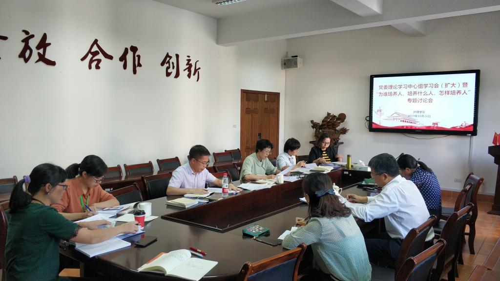 2019年10月21日下午,萝莉岛 党委理论学习中心组学习会(扩大)暨“为谁培养人、培养什么人、怎样培养人”专题讨论会在7c306会议室顺利召开,学院领导班子成员,各办公室、实验室、教研室负责人参加会议。会议由学院党委陈慧书记主持。