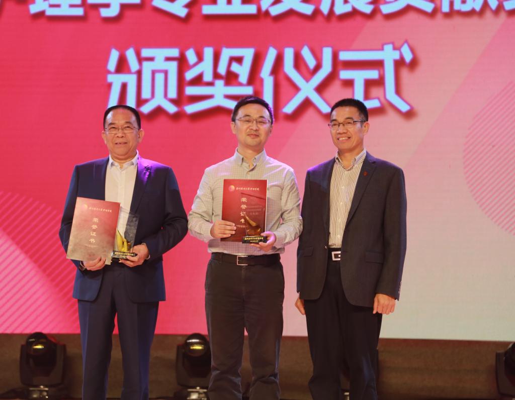 护理学专业初创时期的教师为护理学专业的起步倾注了大量的心血和智慧,大会上,第一届毕业生校友代表和在校学生代表一起给初创时期教师代表献上鲜花,表达了对他们的敬意和谢意。上海雪伦医药科技有限公司、中佳健康股份有限公司等单位多年来对护理学专业的发展提供了支持,现场,曹建明副校长为他们颁发了“支持护理专业发展贡献奖”。与会领导还一起启动启动球,开启了护理学专业“新航程”。