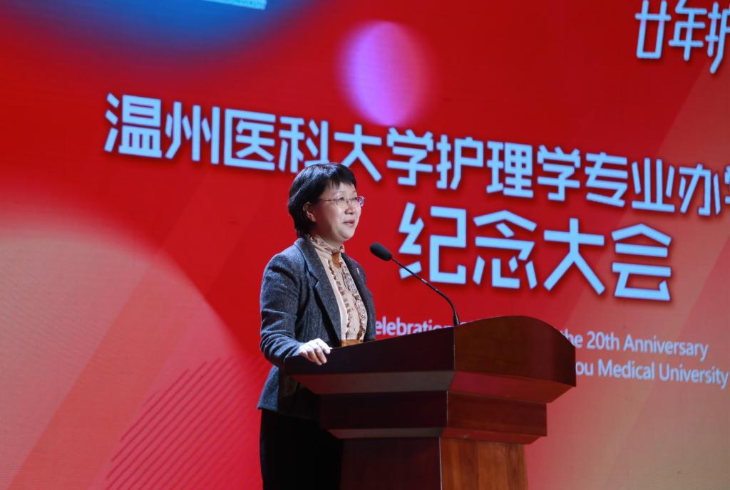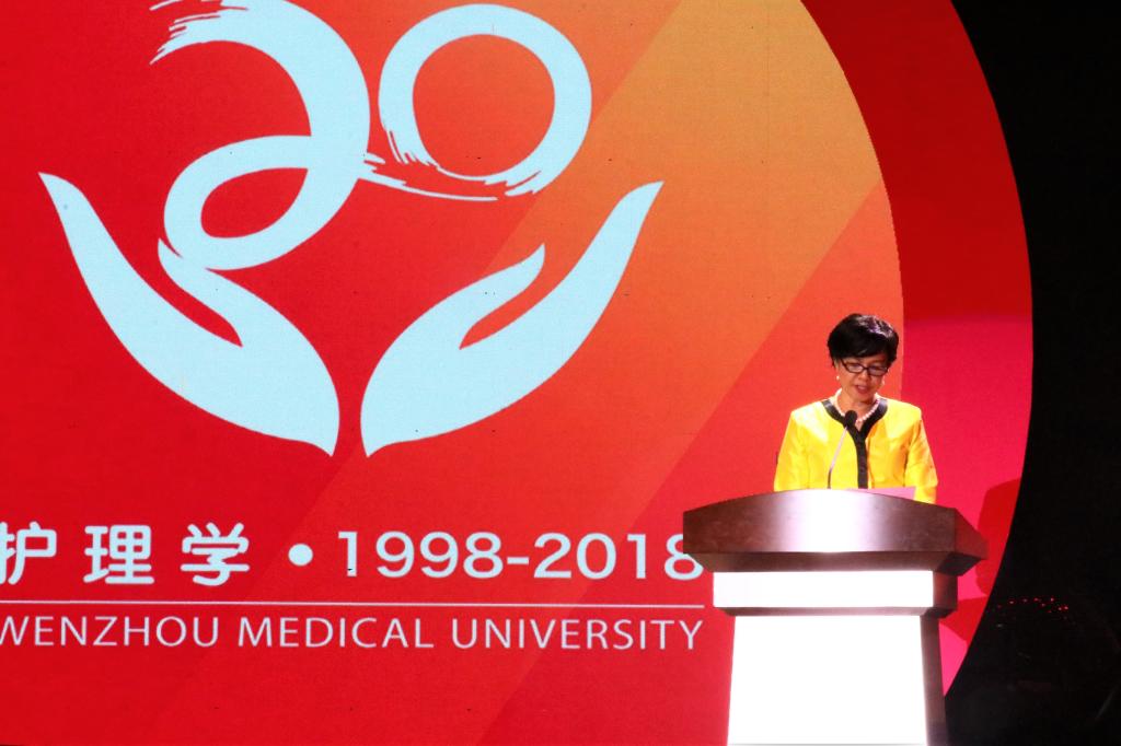 吴欣娟理事长代表中华护理学会致辞,感谢学校为护理事业发展所做的贡献,并简要介绍了我国护理事业发展状况,希望我校护理学专业传承20年的办学历史,继续开拓进取、勇攀高峰,为社会培养更多更好的高级护理人才,为高等护理教育、为健康中国建设做出新的更大的贡献!吴欣娟表示,中华护理学会将会一如既往地支持和关注我校护理学专业的发展,携手推进健康中国建设,共创护理事业美好的明天。