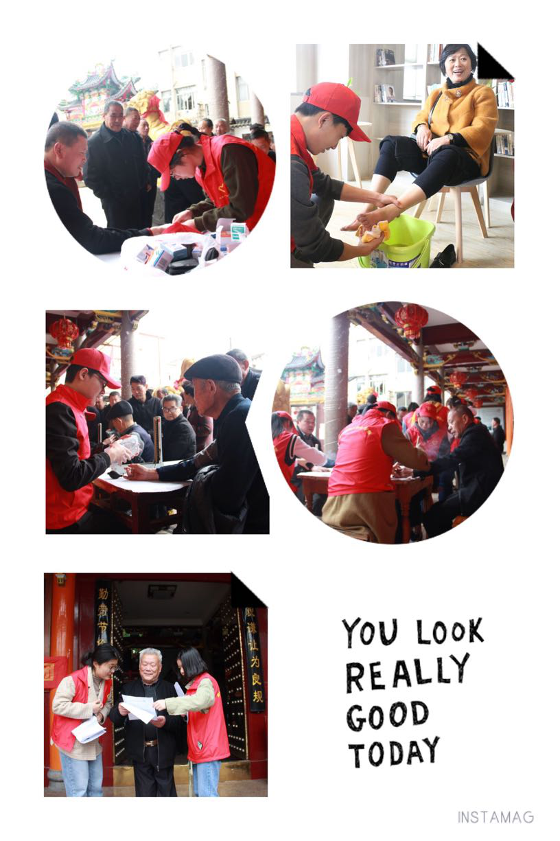 志愿者们一大早就将物品准备齐全,穿好志愿服,戴好小红帽,在老师们的带领下来到文化大礼堂开展义诊活动。老人们对于志愿者们的到来感到十分开心,帮忙安排桌椅、带领志愿者到烧水的地方、有序地排队进行检查。有的志愿者为老人们测量血压和血糖,耐心地解释测量结果并告知他们日常生活中的注意事项;有的志愿者为老人们艾灸,驱逐他们体内湿寒、缓解四肢疼痛以达到增强免疫力的效果;还有的志愿者为老人们提供足浴服务,舒缓足底经络,增强抗寒能力;剩下的志愿者对老人们进行健康宣教以及眼保健知识的宣传,普及春季常见疾病预防知识,增进他们的健康卫生保健意识。义诊结束之后,志愿者以PPT讲解的方式给老人们进行了禁毒知识的宣传,以增加他们对禁毒知识的了解,为树立文明和谐的社会新风气共同努力。