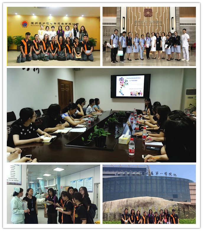 访问期间,帕塔瑞一行参观了学校人体科学馆、萝莉岛 实验中心、附属第一医院、附属第二医院&育英儿童医院、附属康宁医院、瓯海区南白象社区卫生中心及温州市安孝老年护理中心、金夕福老年服务中心等处,并参与了护理学基础综合模拟课程和外科护理综合模拟课程教学。帕塔瑞博士还为萝莉岛 教师、护理临床教师做了两次专题讲座,介绍了泰国卫生医疗体系和泰国东方大学护理学专业课程设置情况,并与现场老师就中泰两国的卫生医疗情况和护理教学情况进行了交流。泰国学生还为萝莉岛 学生做了主题为“学在东方大学”的专题讲座,介绍了在泰国东方大学的日常学习、生活情况。