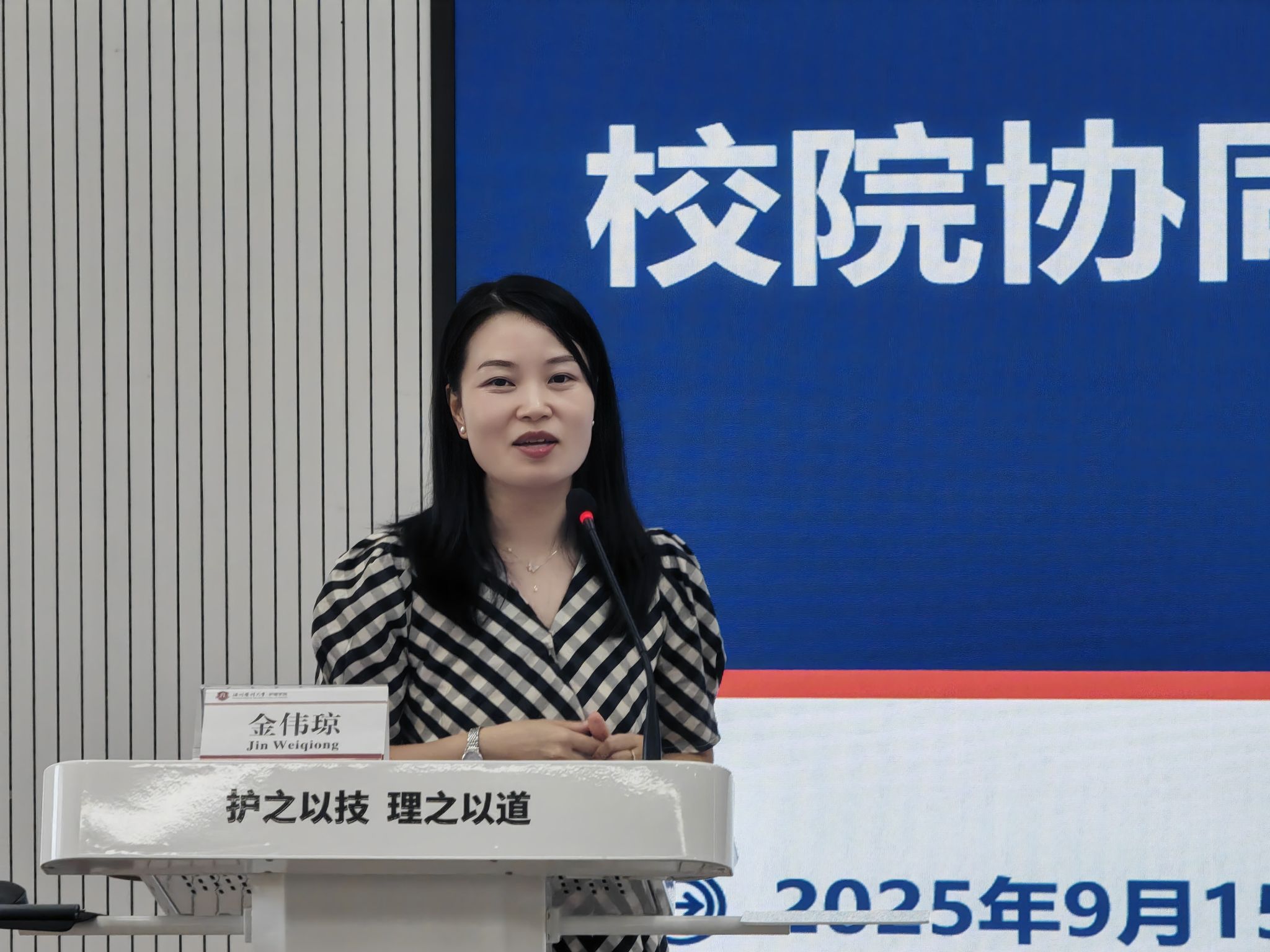 会议伊始,金伟琼主任围绕“校院协同,构建教育教学质量文化”作专题报告。她从学校与学院协同发展的战略高度出发,强调应以四维系统为支撑,深化质量文化建设,系统推进人才培养质量提升,为教学督导工作的科学化、系统化开展提供了理论依据与实践路径。她进一步指出,教学督导应成为质量文化建构的核心驱动力,促进教育教学持续改进与创新。