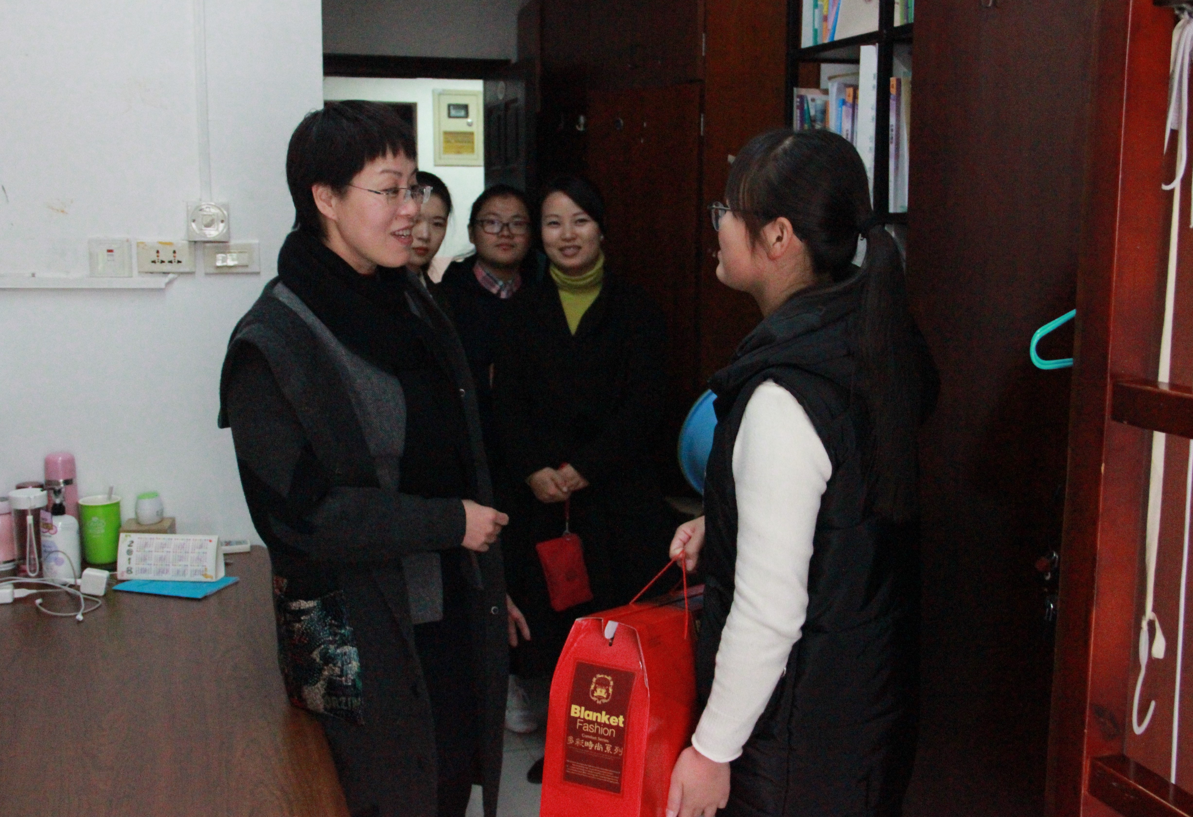 12月12日,萝莉岛 党委陈慧书记一行来到学生公寓四号楼,利用午休时间代表学院对部分家庭经济困难学生进行慰问,为她们送去冬天御寒的毛毯。陈书记心细如尘,热情地与同学们进行交流,亲切关怀了同学们近一学期的生活,叮嘱同学们冬天要做好保暖工作,照顾好自己,在寝室要做好保洁和防盗,特别注意用水用电安全。陈书记十分关心同学们的学业情况,在了解同学们是否有勤工俭学情况后,陈书记表示,护理学专业的学习并不是那么容易,同学们应该以学习为主,有任何困难可以向学院反映,希望同学们的大学生活能有一个好的开端。