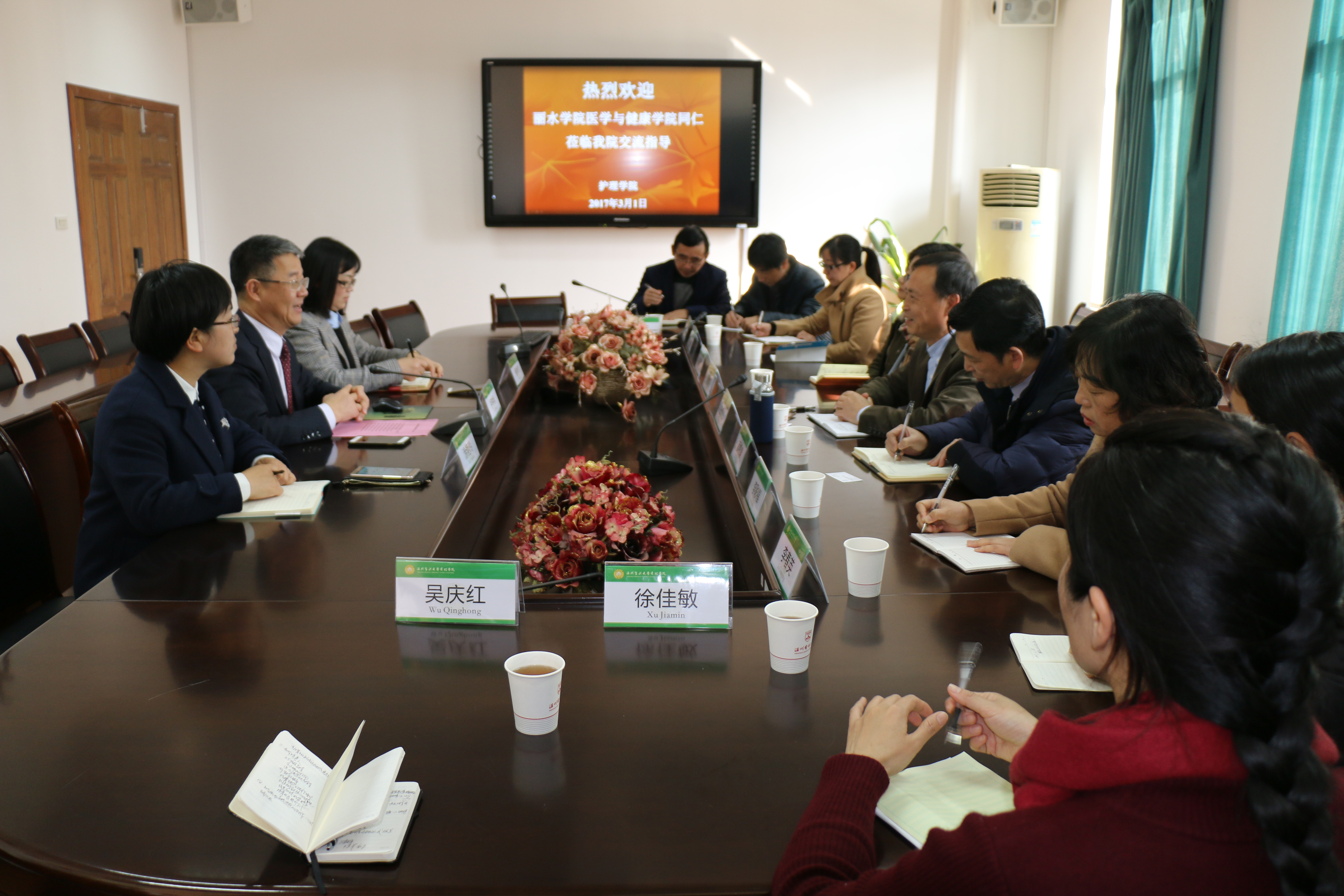 3月1日,丽水学院医学与健康学院党委书记、常务副院长王伟杰,副院长吴松泉等一行11人来访萝莉岛 。萝莉岛 院长卢中秋、副院长杨晔琴、党委副书记涂艳玲等热情接待了来访客人。