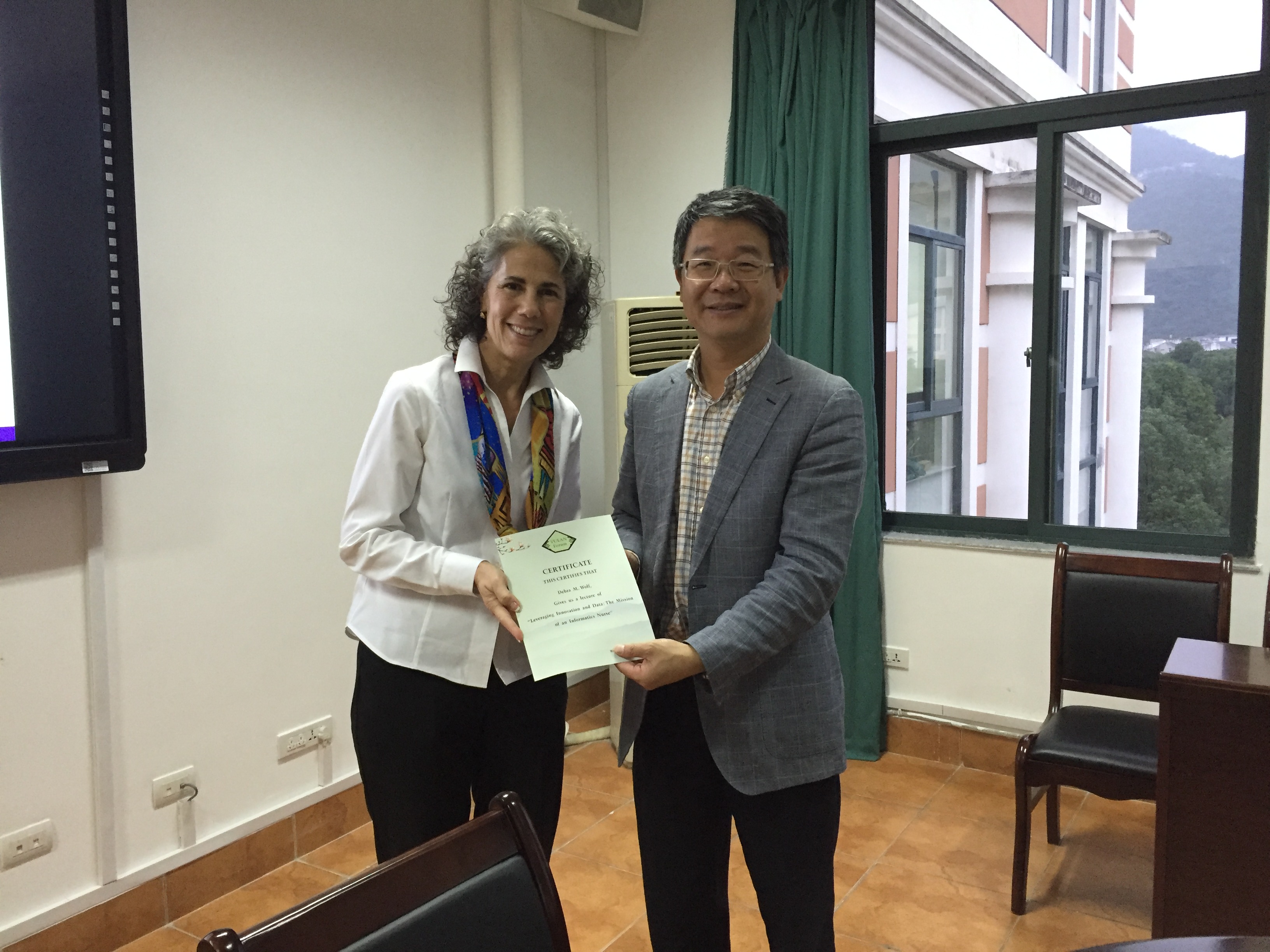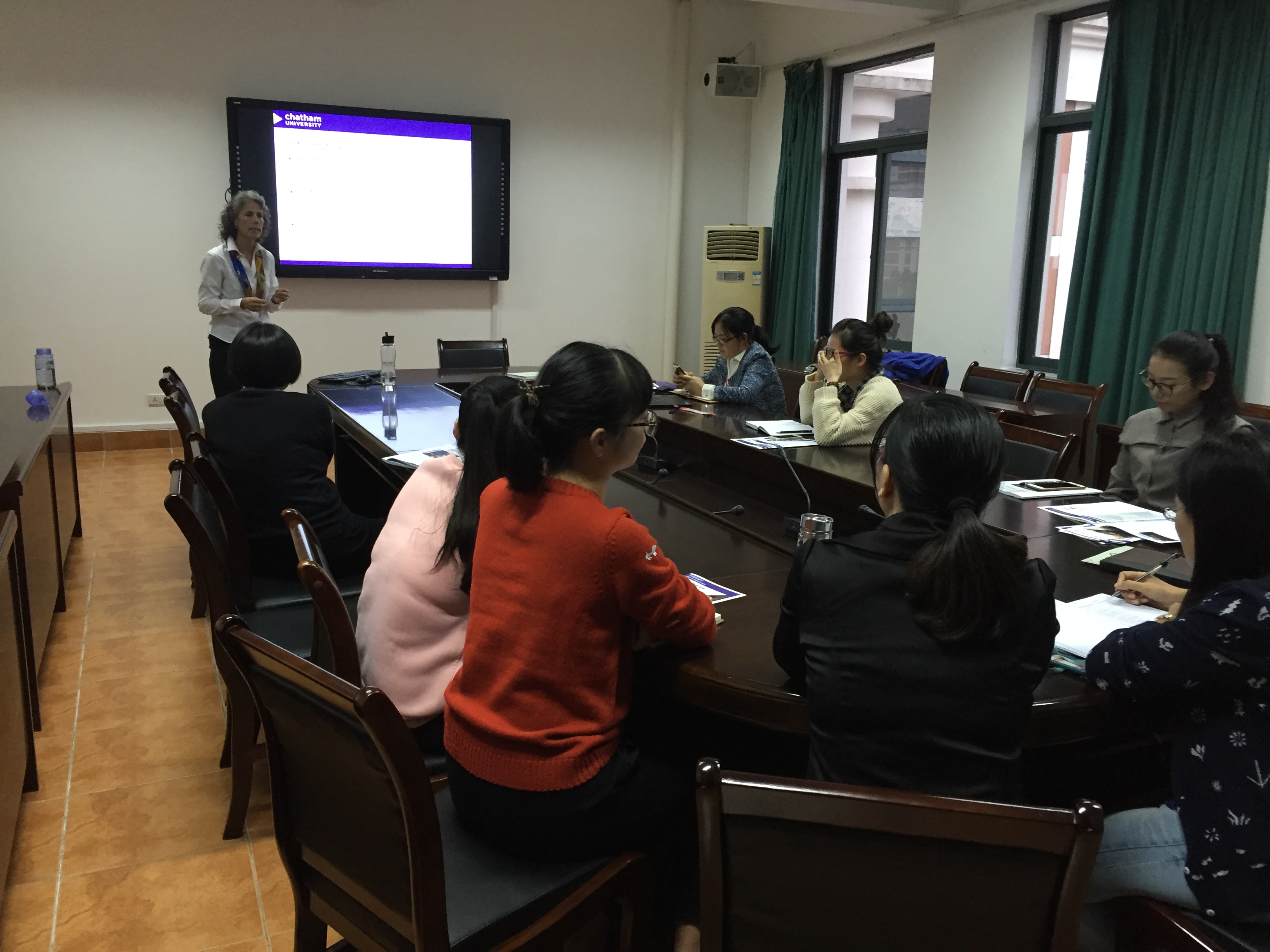 11月8日,美国Chatham大学萝莉岛 Debra Wolf博士来访萝莉岛 。院长卢中秋、副院长杨晔琴以及各教研室主任、相关专业课教师在7C306会议室与Wolf博士进行了交流。