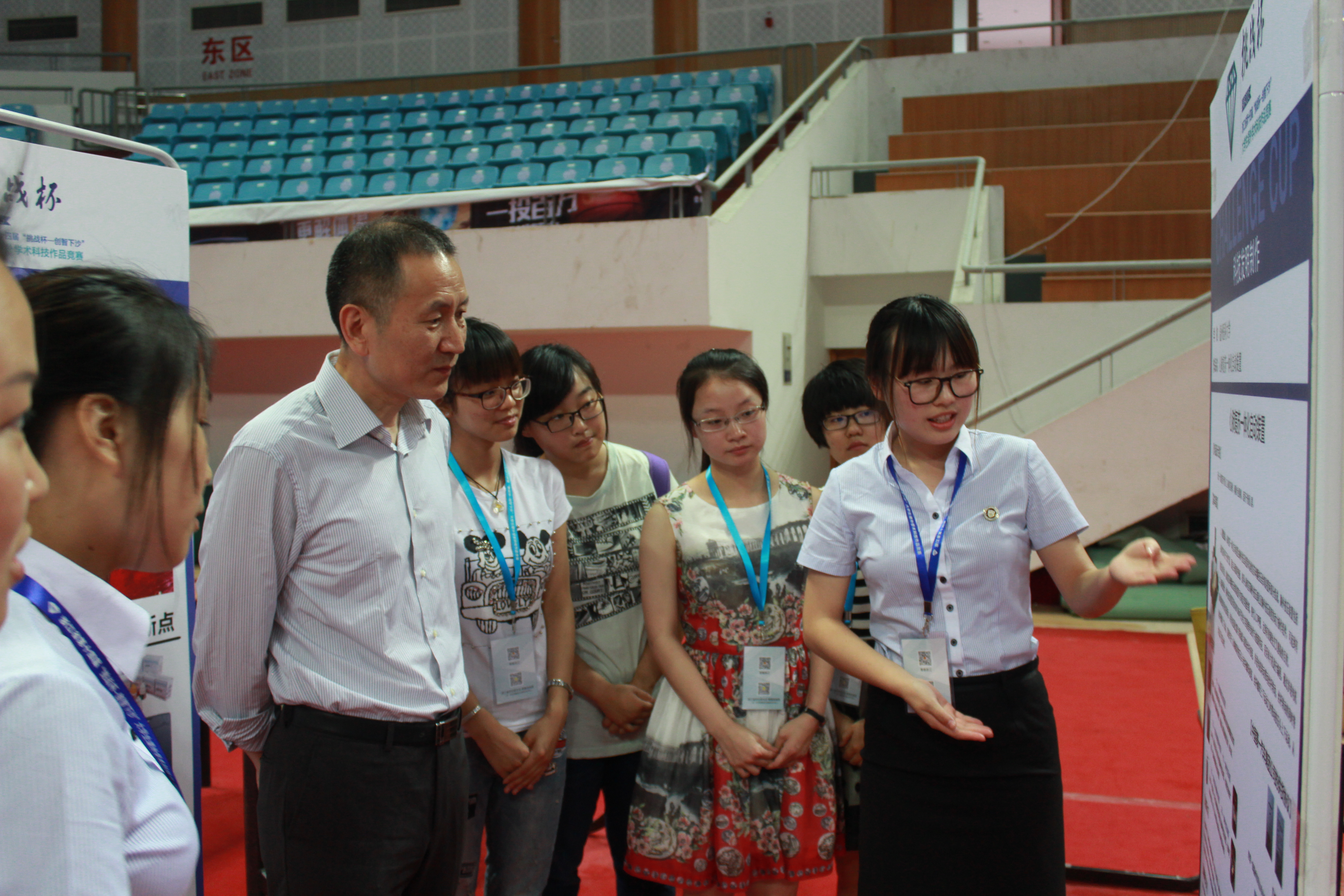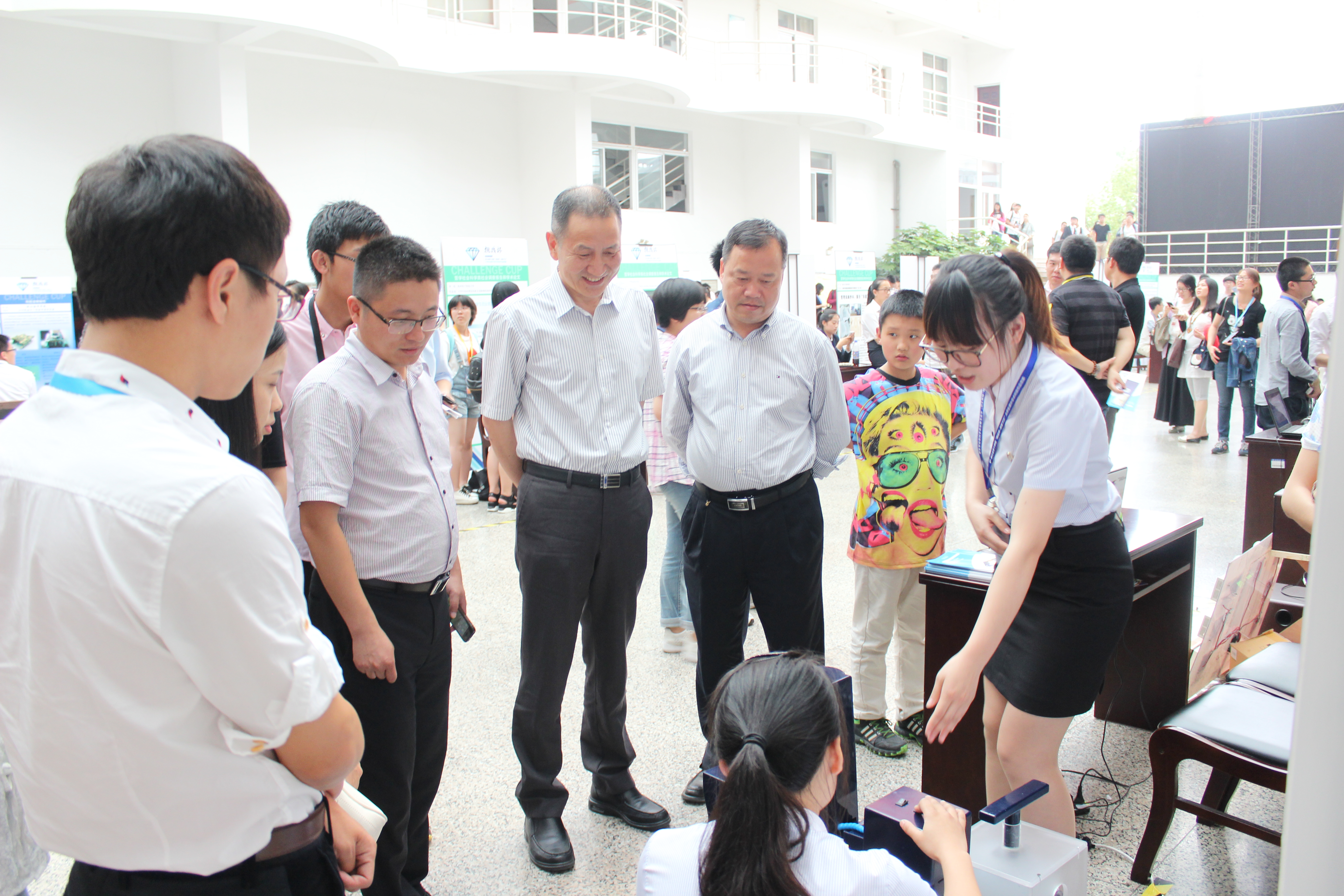 学生在成果展示区域进行作品展示