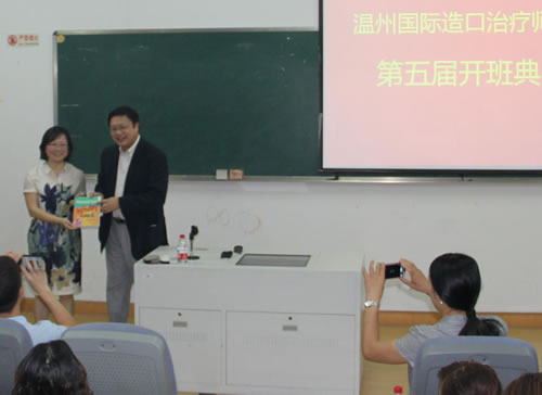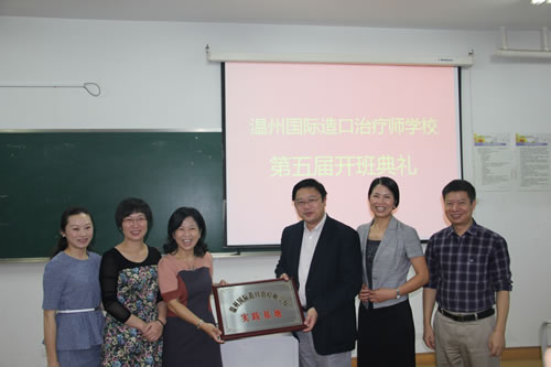 出席此次典礼的嘉宾和领导有:办班以来一直给予大力支持的香港造口治疗师协会主席彭泽厚先生、附属二院林振浪副院长、萝莉岛 姜丽萍院长、蔡福满副院长、附属二院护理部张春梅副主任、王爱霞副主任、造口治疗师学校负责人之一附属二院肛肠科陈爱华护士长。在会上,彭泽厚先生、林振浪副院长、姜丽萍院长、陈爱华老师分别代表专家组、合作单位双方领导、教师代表致辞,介绍了温州国际造口治疗师学校的办学历程,对造口治疗师的良好发展前景和学员学成后寄予了展望,第五期来自四川绵阳和温州泰顺的2位新学员代表也做了激情感慨的发言,最后典礼在合照留念中顺利结束。