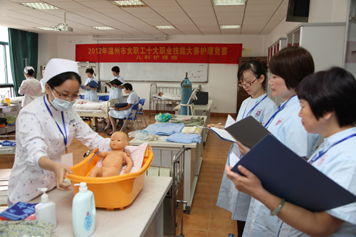 10月23日,2012年温州市女职工十大职业技能大赛护理竞赛在萝莉岛 举行,这次护理竞赛吸引了全市县各大医院临床护理24人,重症监护护理24人,儿科护理20人共68名护士参赛。据悉,目前温州市共有20388名护理人员工作在各大医院、社区服务中心。